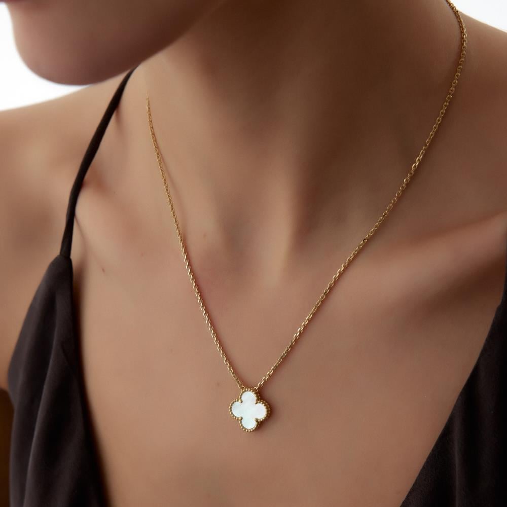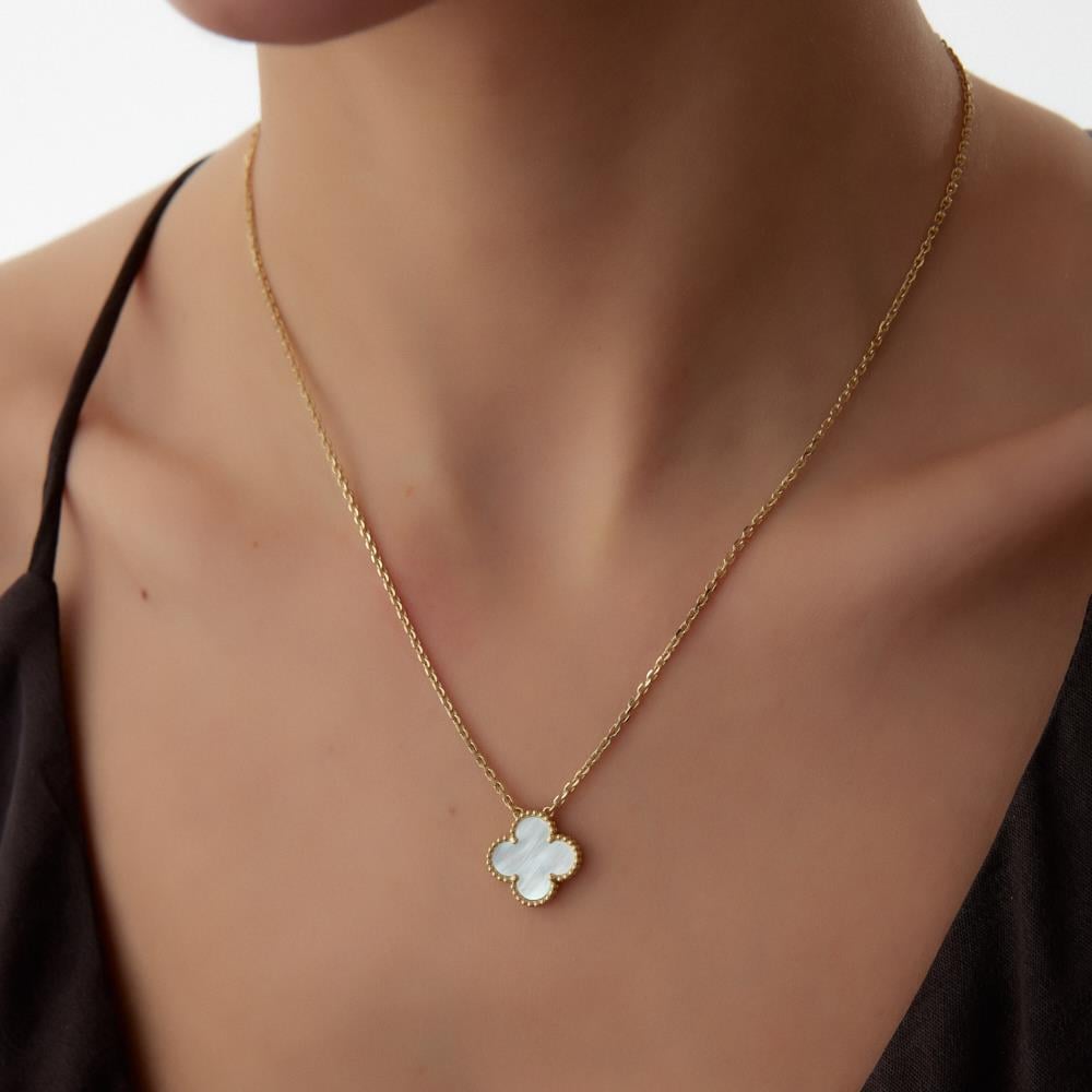 18 Ayar Altın Sedef Yonca Kolye