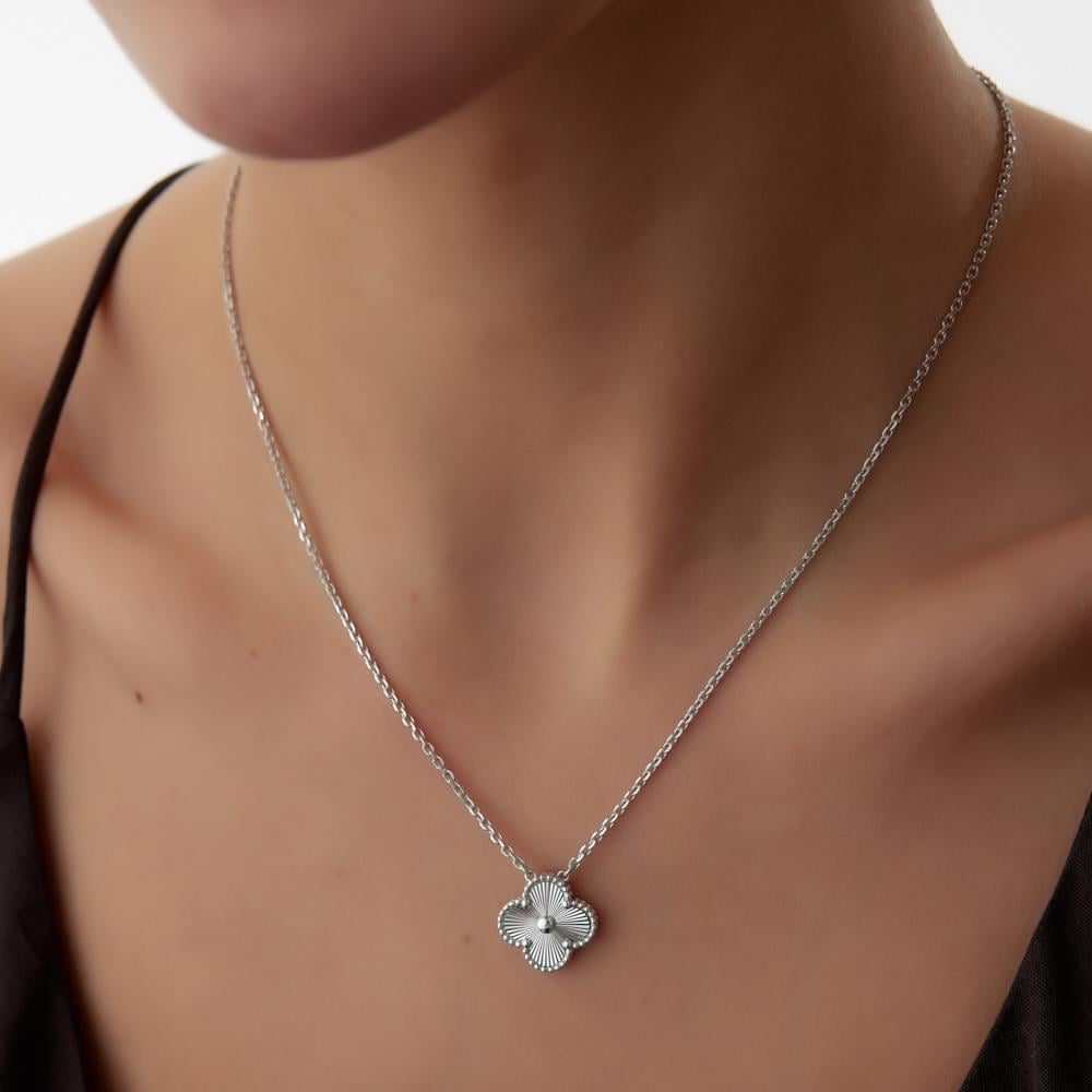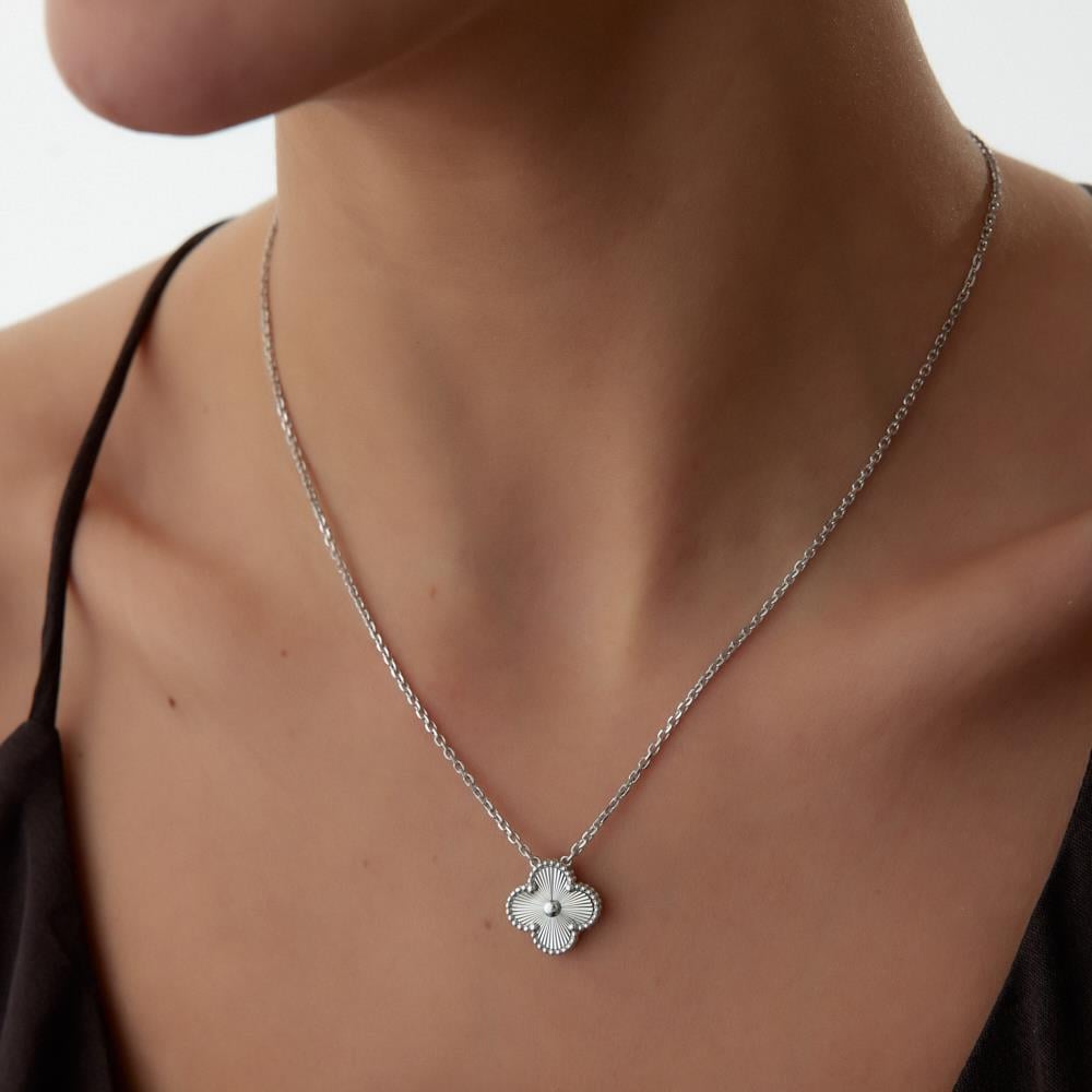 18 Ayar Beyaz Altın Yonca Kolye