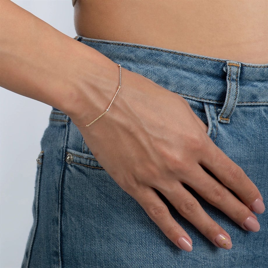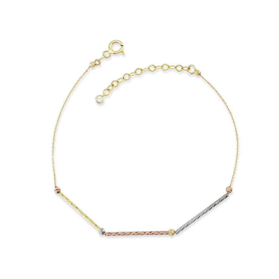 3 Renk Altın Dorika ve Çubuk Minimal Zincir Bileklik