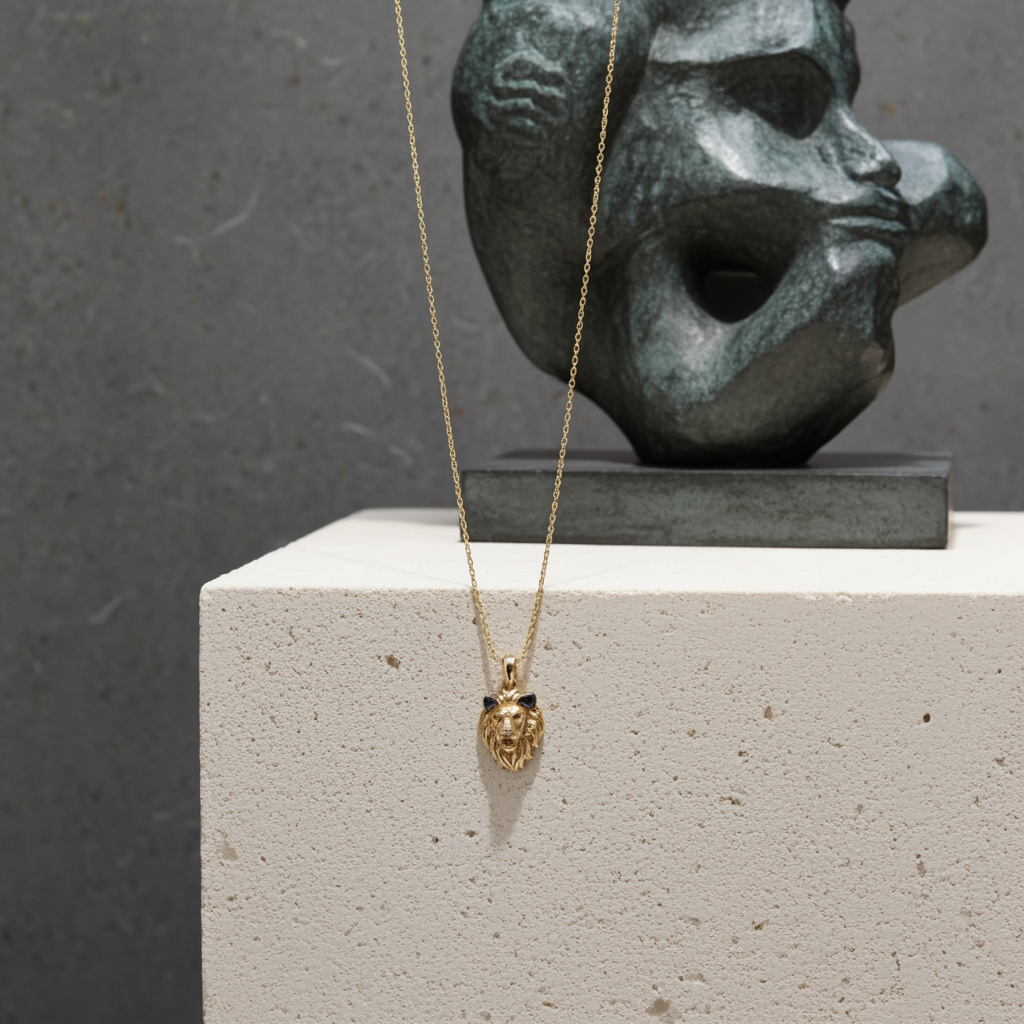 Aslan Figürlü Minimal Altın Kolye