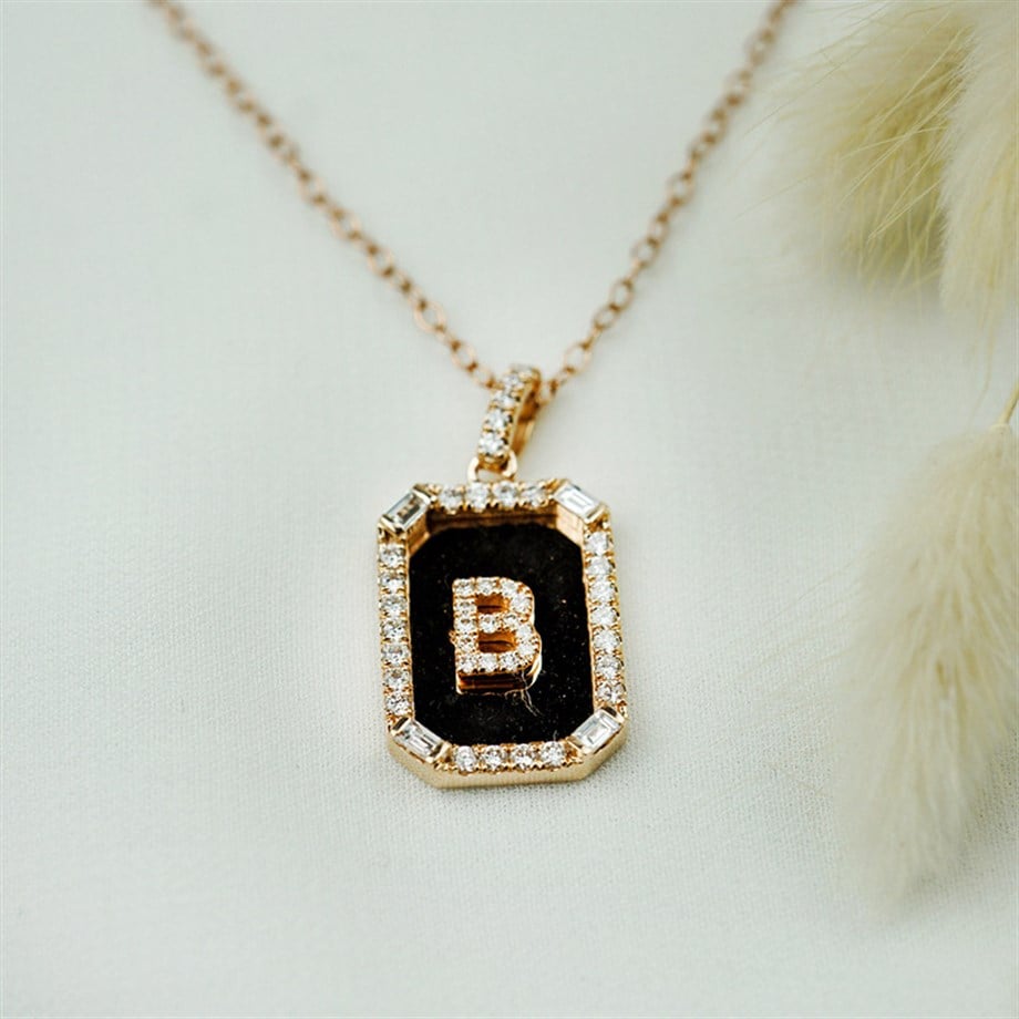 Baget ve yuvarlak kesim pırlanta taşlardan oluşan harf kolyelerimiz size özel..
