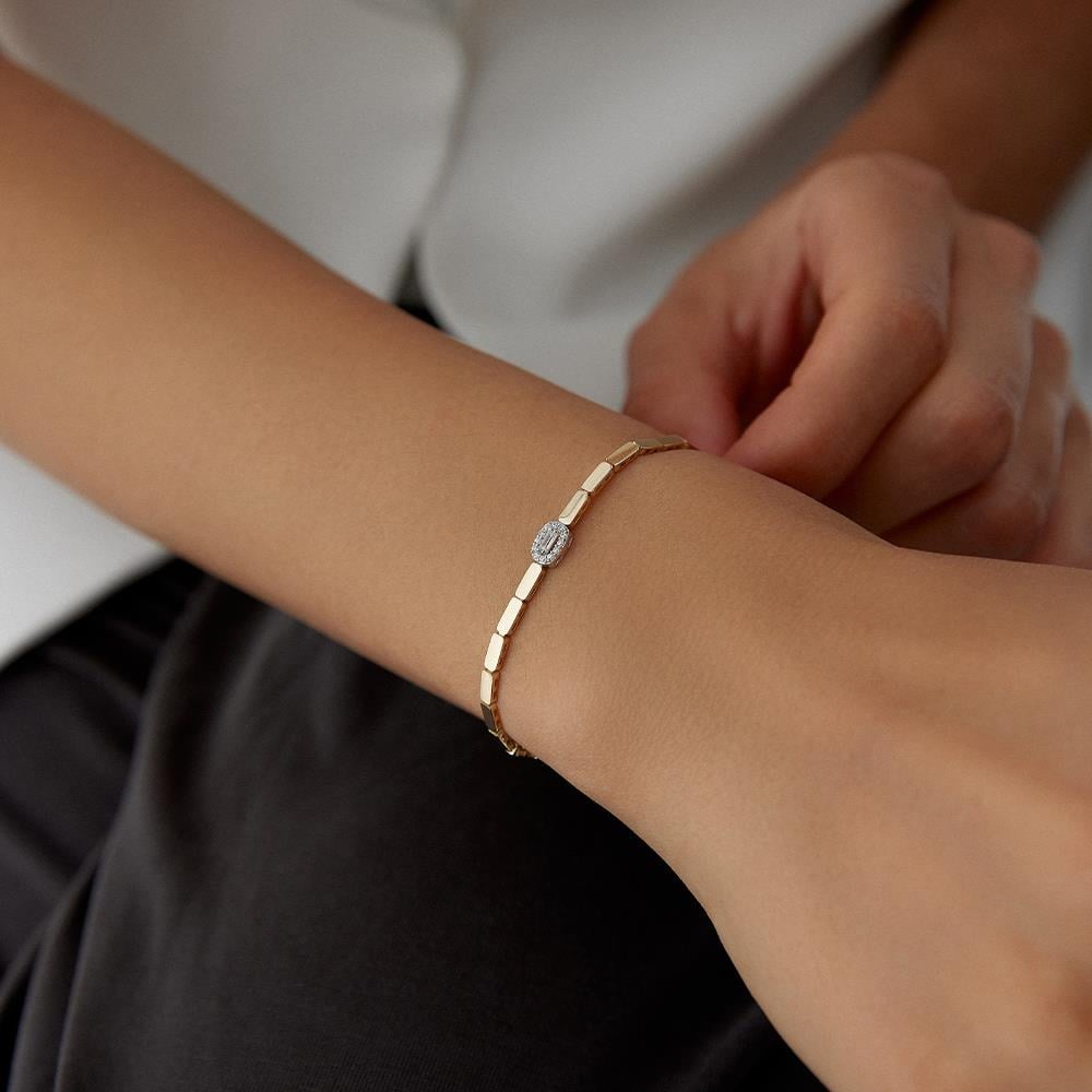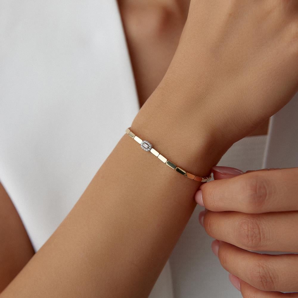 Baget Taşlı Dikdörtgen Sıralı Altın Bileklik