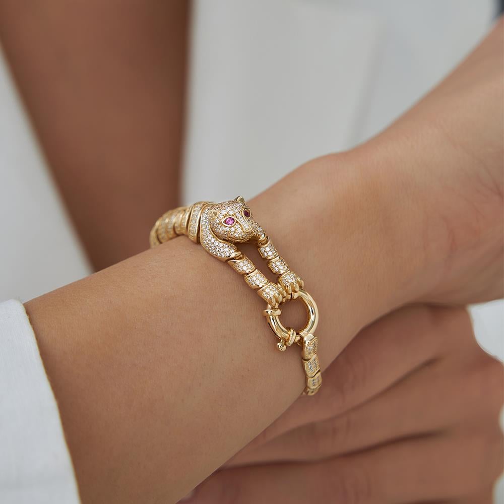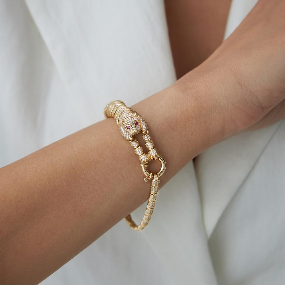 Cetaş Beyaz Taşlı Leopar Bileklik