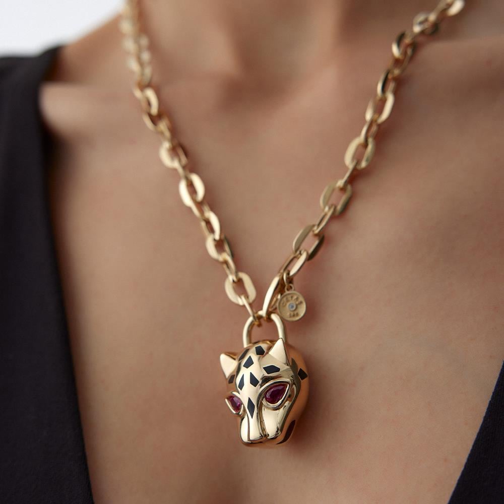 Cetaş Bir Dilek Tut Leopar Kilit Ataç Zincir Altın Kolye