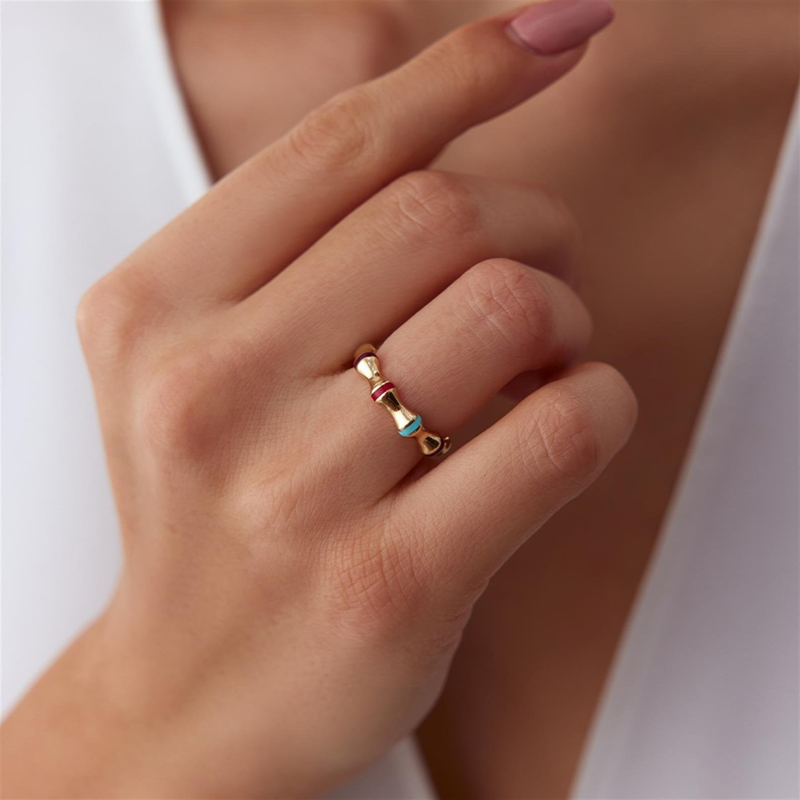 Cetaş Çok Renkli Mineli Minima Yüzük