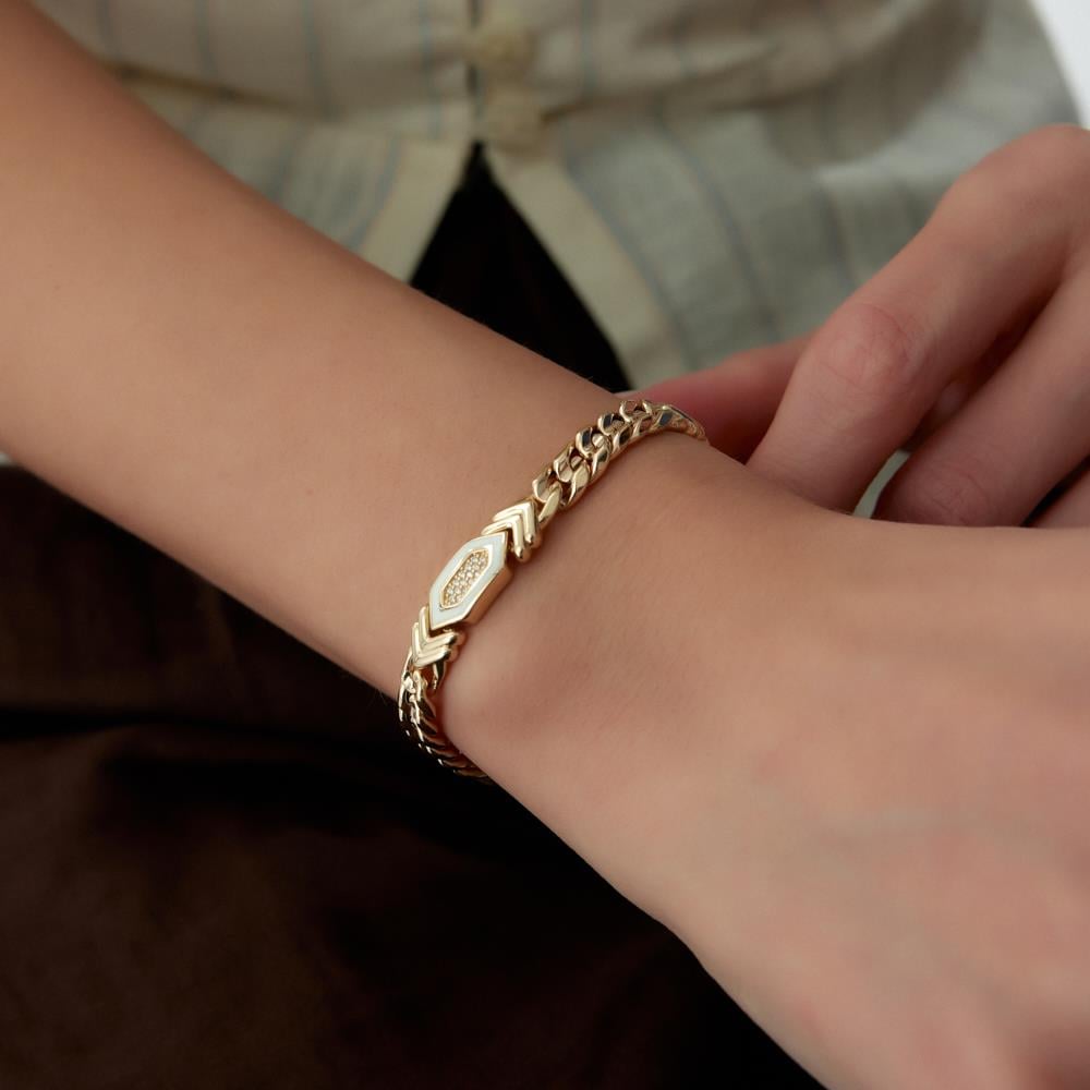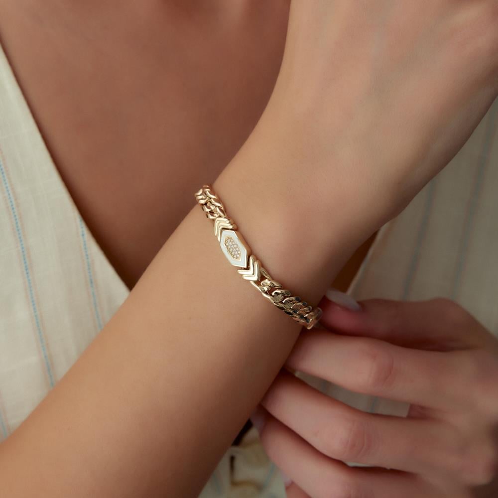 Cetaş Eterna Beyaz Mineli Altın Gurmet Bileklik