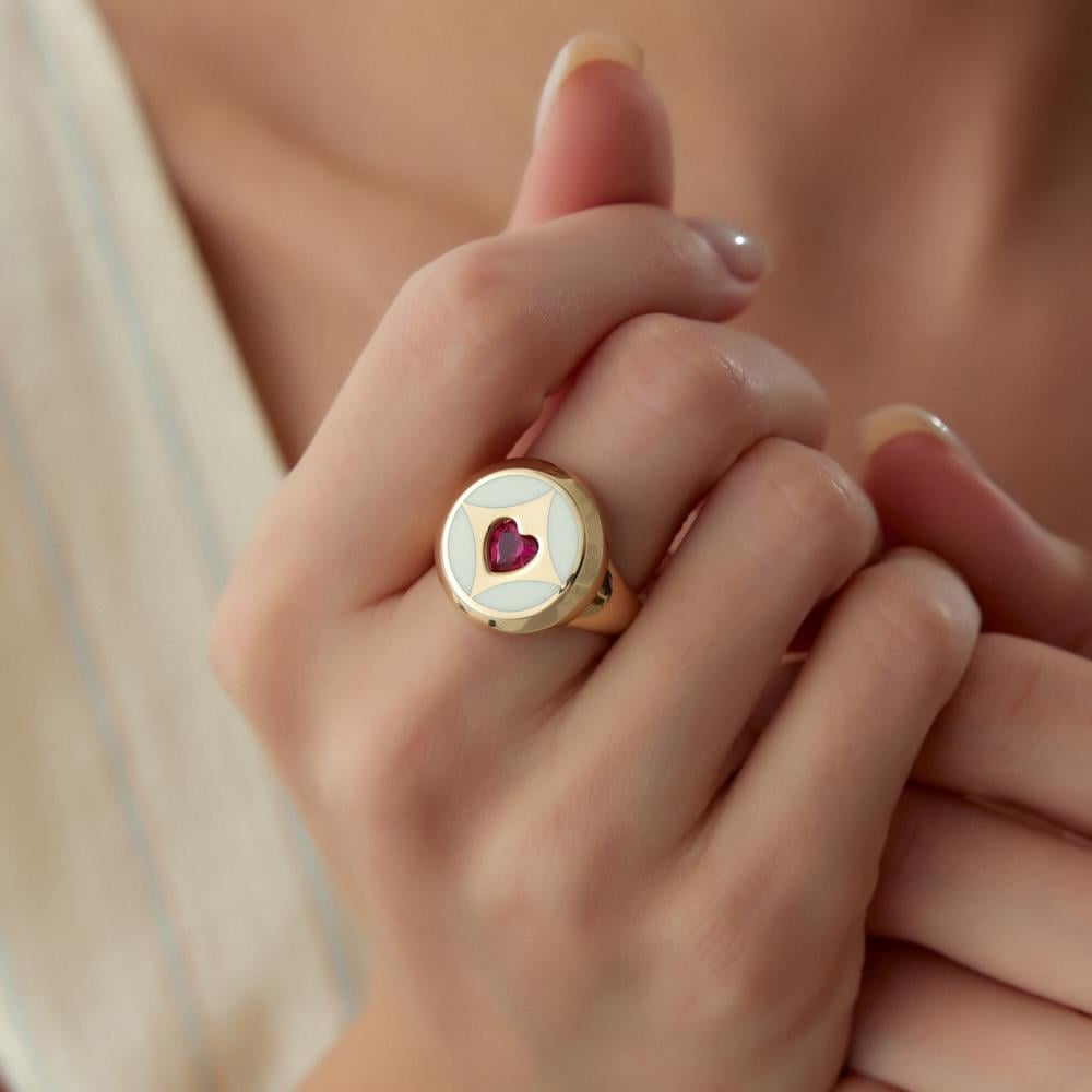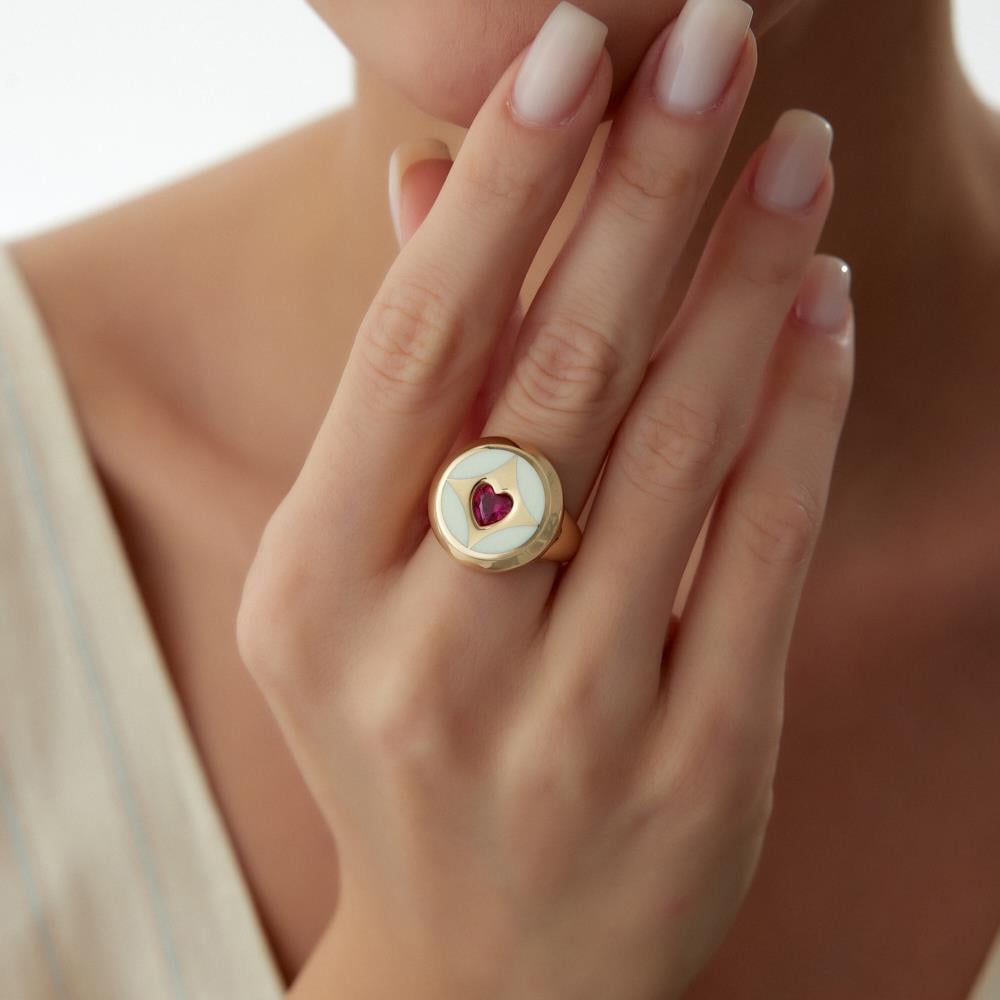 Cetaş Eterna Beyaz Mineli Kalp Ruby Altın Yüzük
