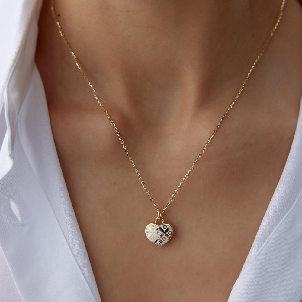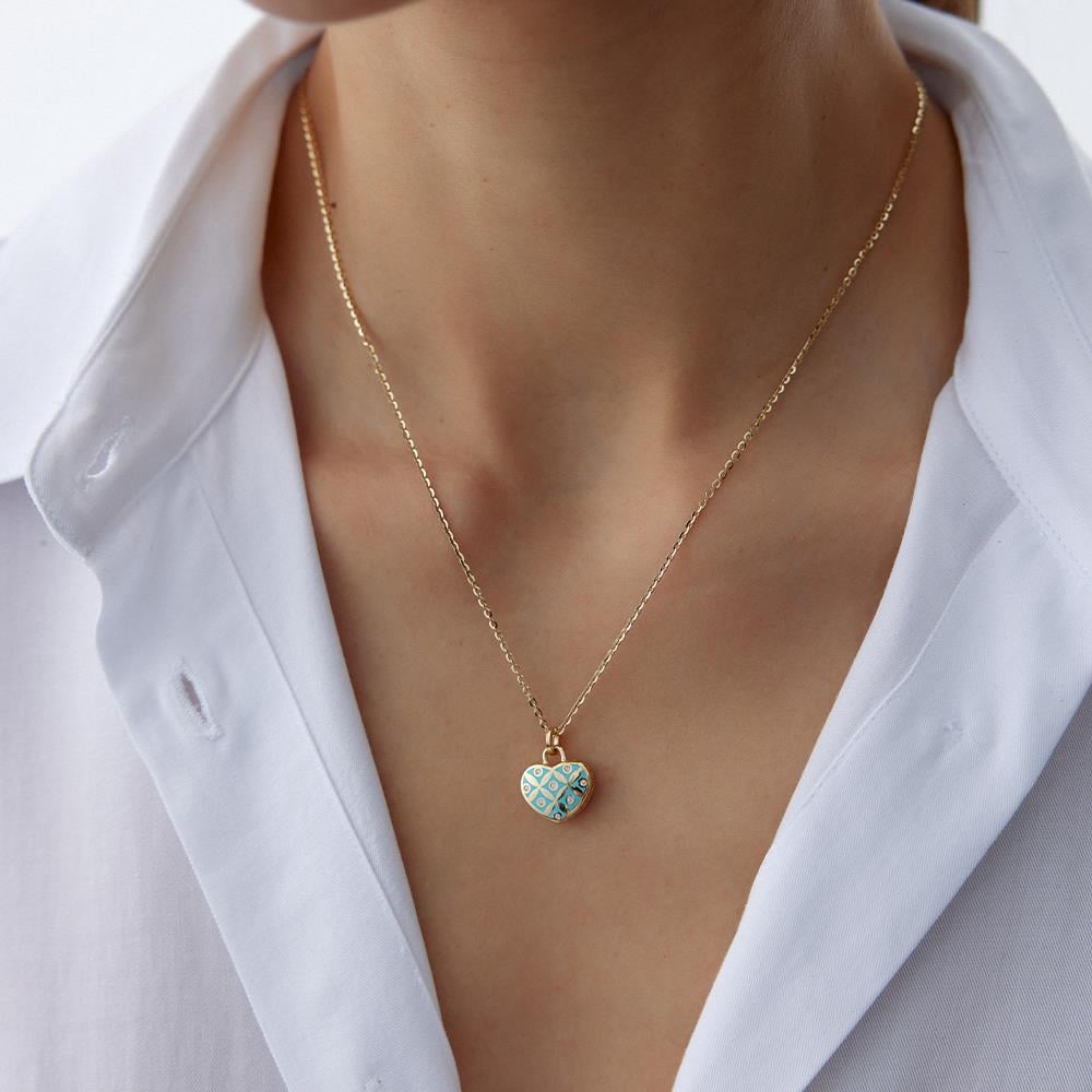 Cetaş Eterna Beyaz Ve Mavi Mineli Çift Taraflı Kalp Charm Altın Kolye
