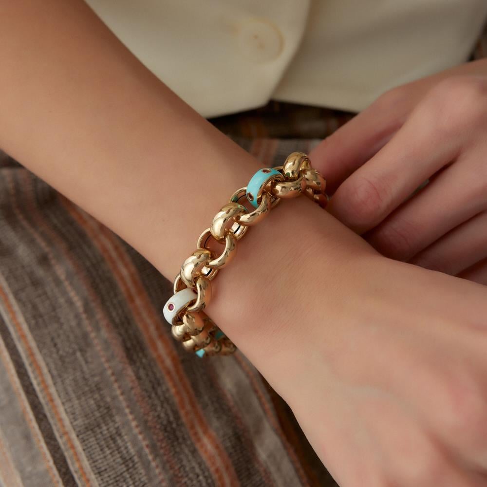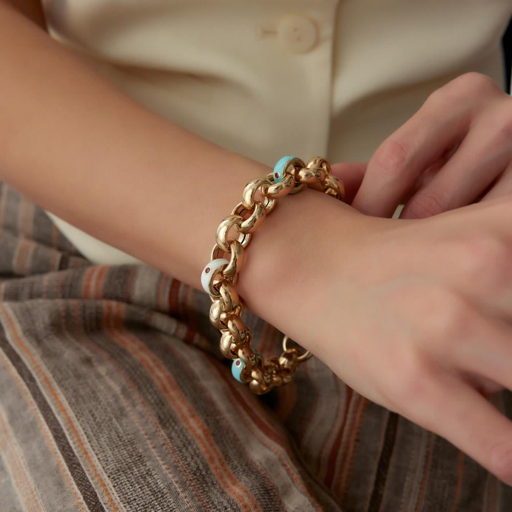 Cetaş Eterna Dodge Mavi Mineli Altın Bileklik
