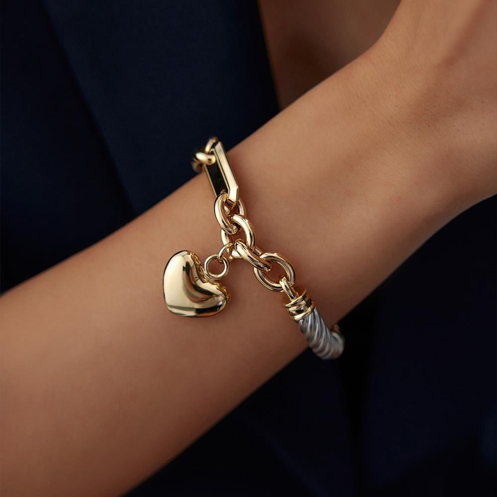Cetaş Eterna Kalp Charm Beyaz Ve Sarı Altın Bileklik