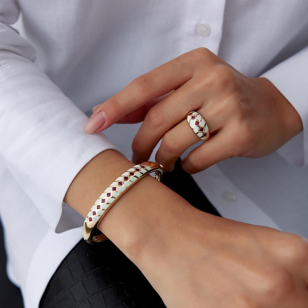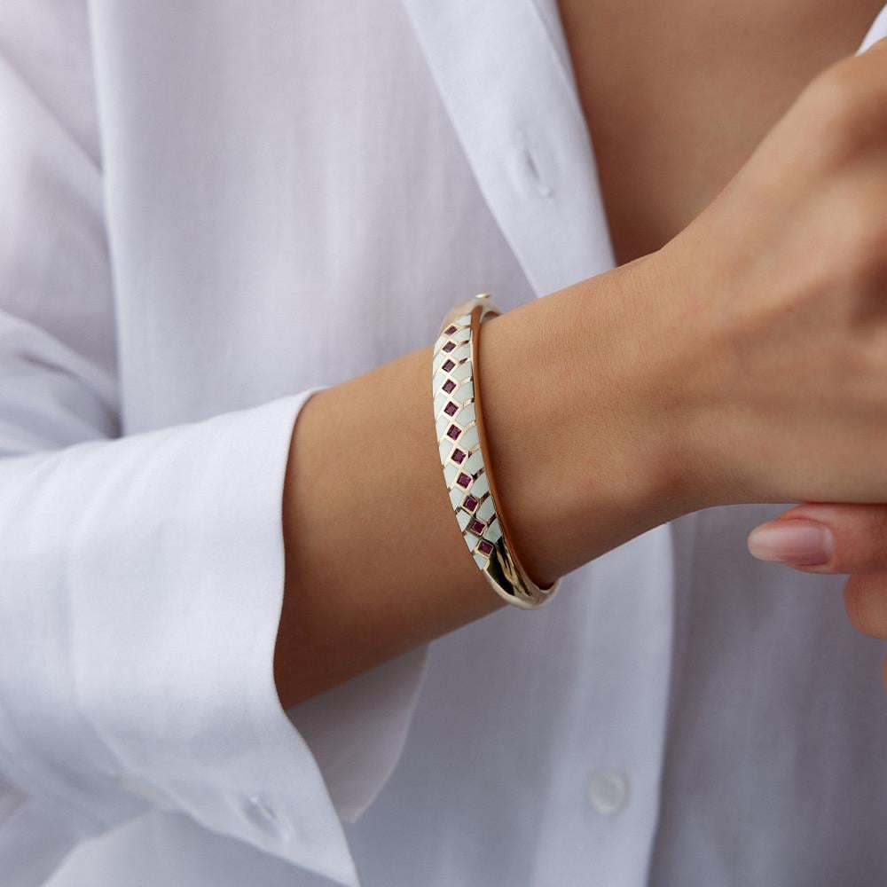 Cetaş Eterna Kırmızı Taşlı Beyaz Mineli Altın Kelepçe