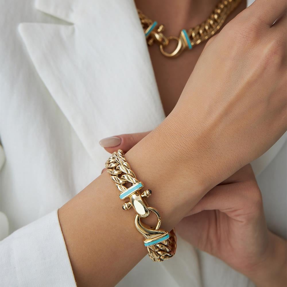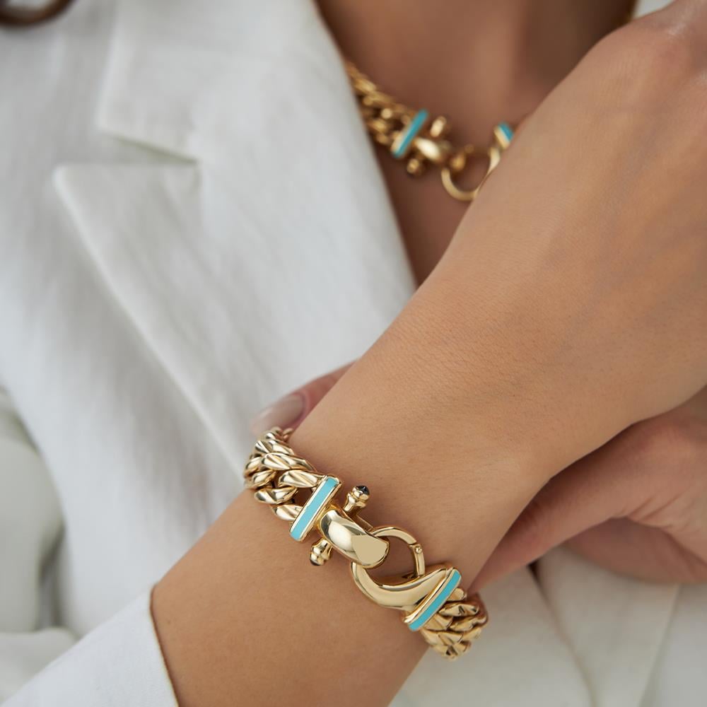 Cetaş Eterna Mavi Mineli Özel Tasarım Kilit Altın Bileklik