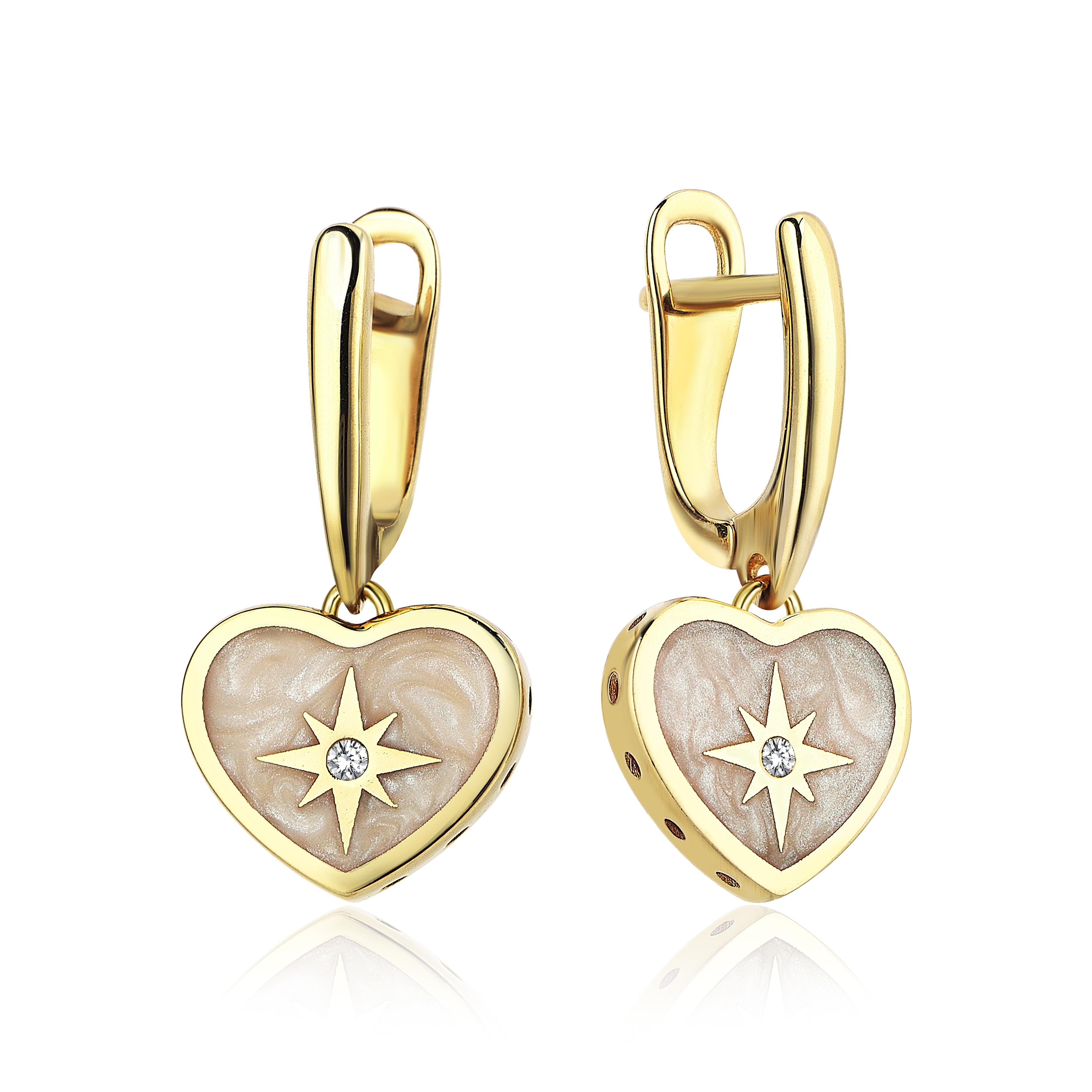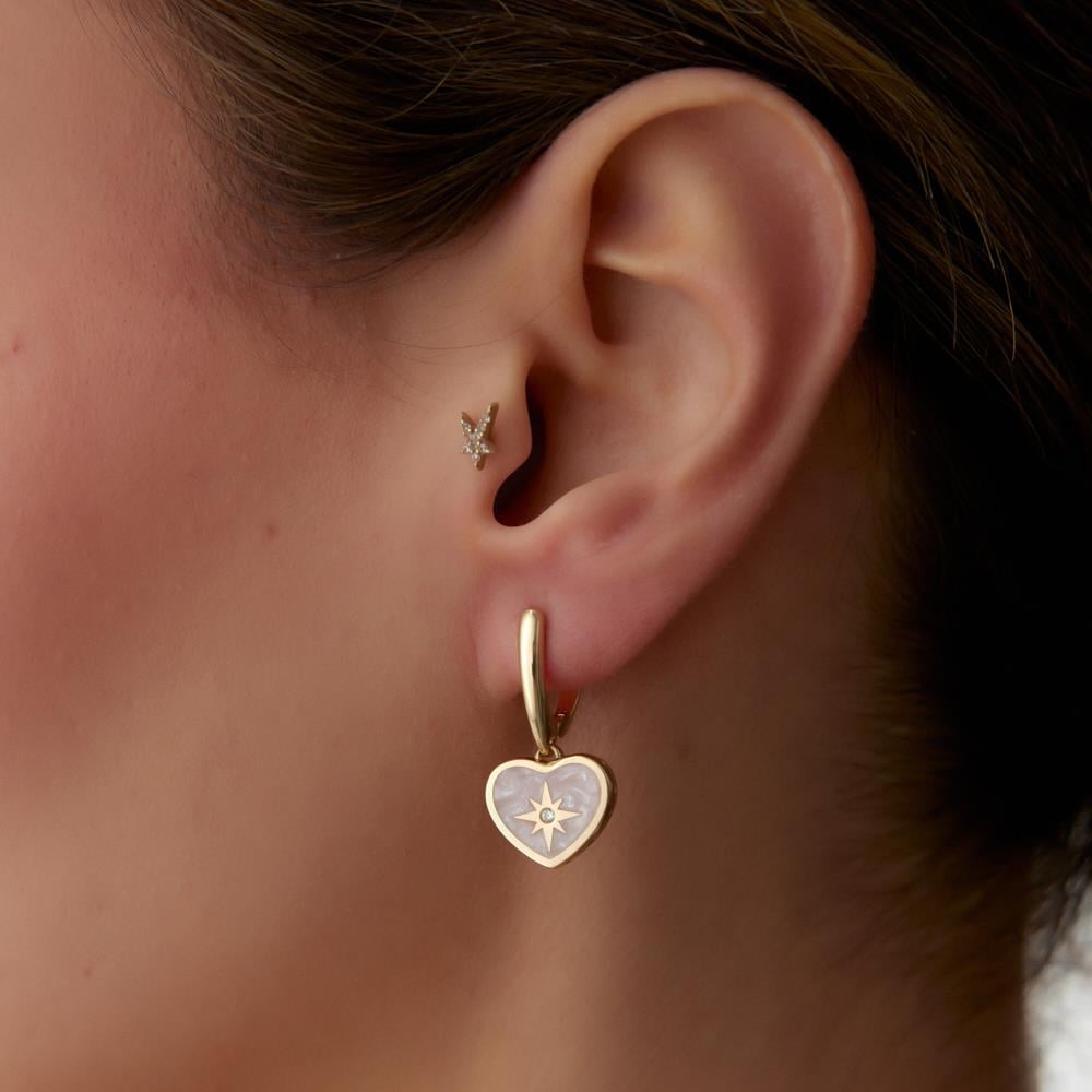 Cetaş Eterna Pembe Sedefli Pusula Kalp Altın Küpe