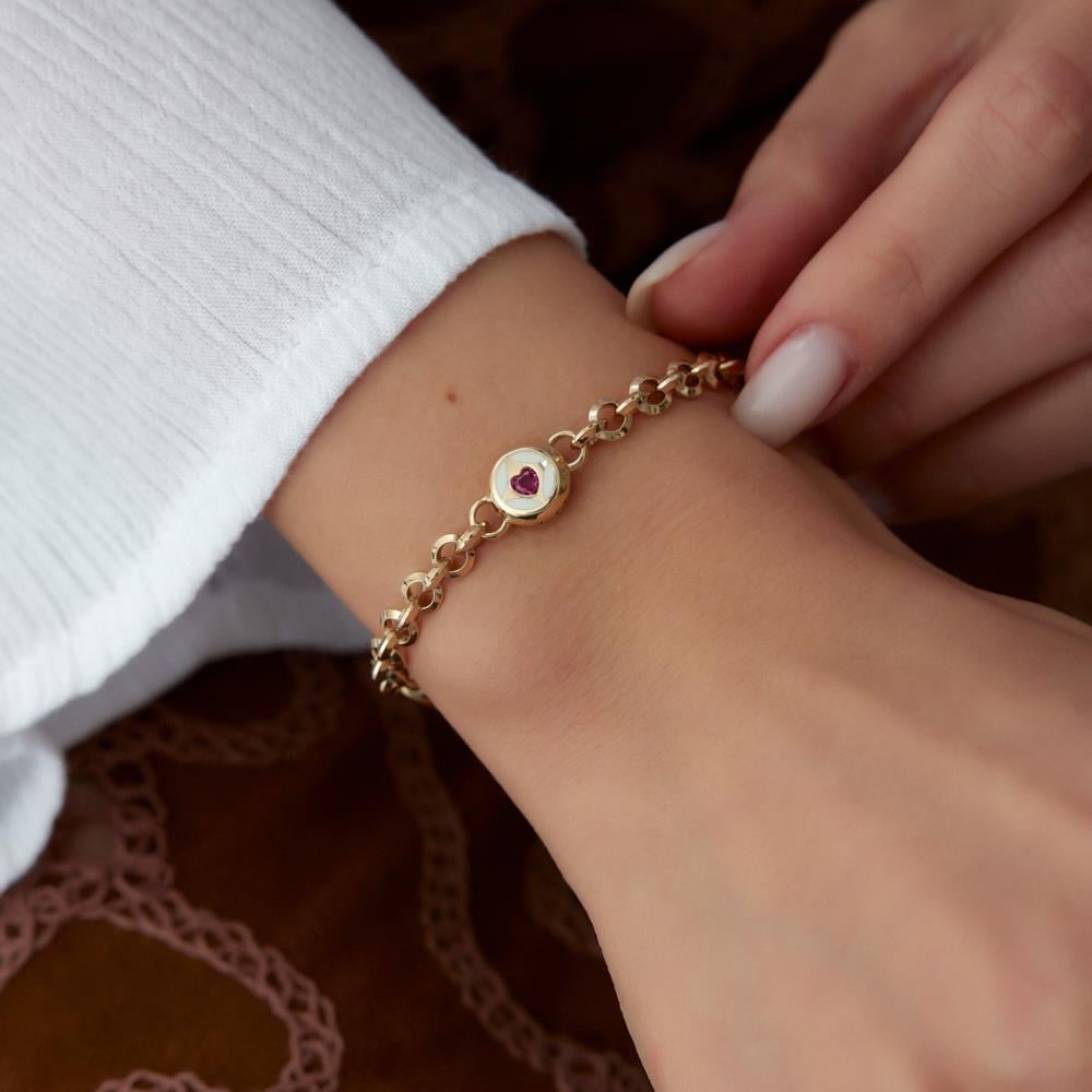 Cetaş Eterna Ruby Kalp Altın Bileklik