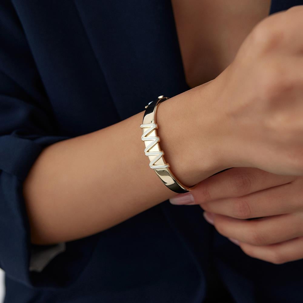 Cetaş Minima Beyaz Mineli Altın Kelepçe