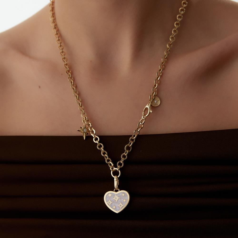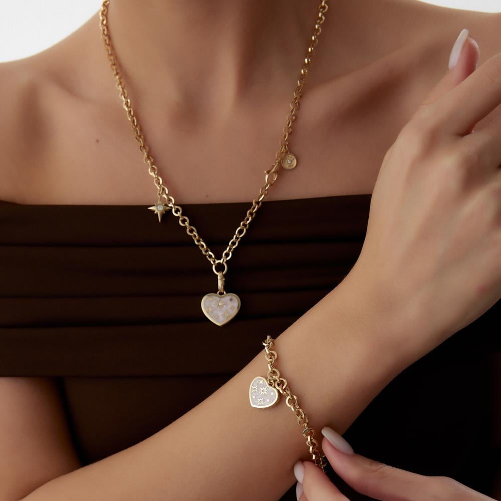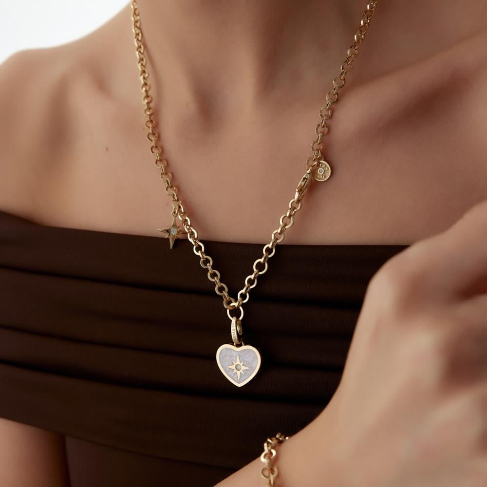 Cetaş Pembe Sedef Pusula Kalp Altın Kolye