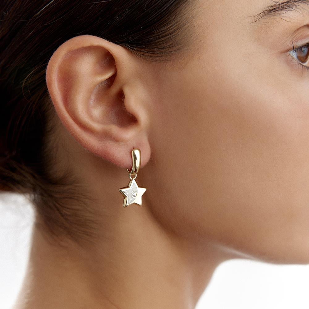 Cetaş Sedef Mineli Yıldız Sallantılı Altın Küpe