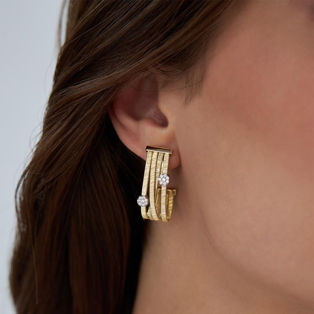 Çiçek Motif Üçlü Hasır Altın Küpe