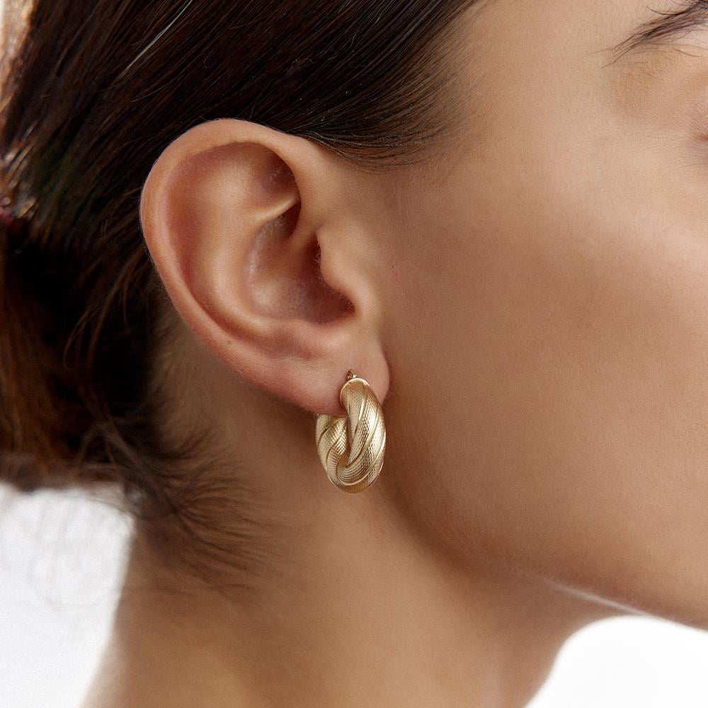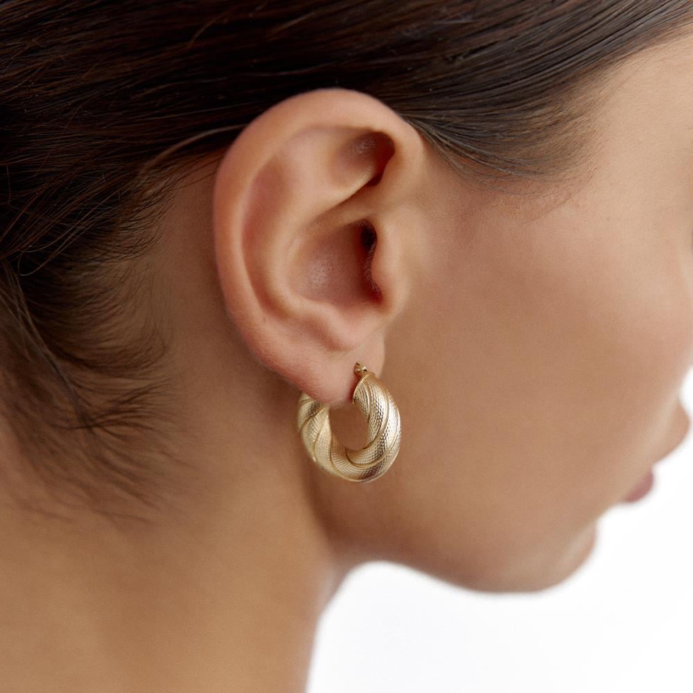 Desenli Altın Simit Halka Küpe