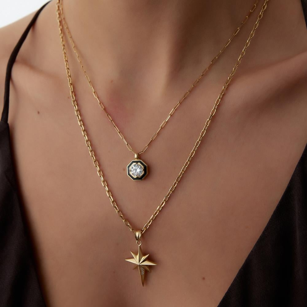 Ema Çift Zincir Kutup Yıldızı Altın Kolye