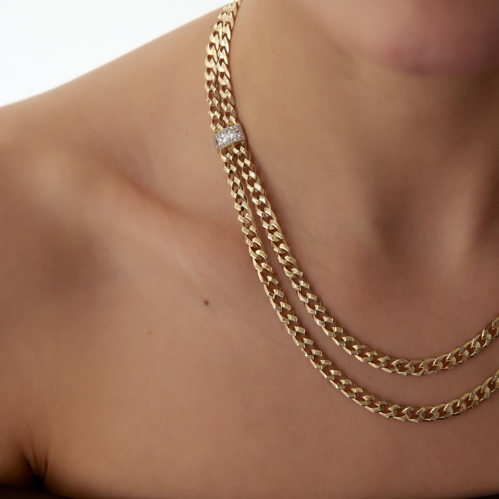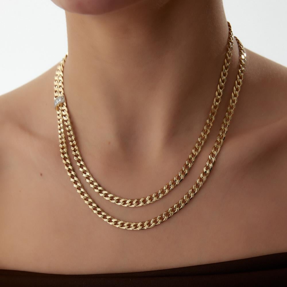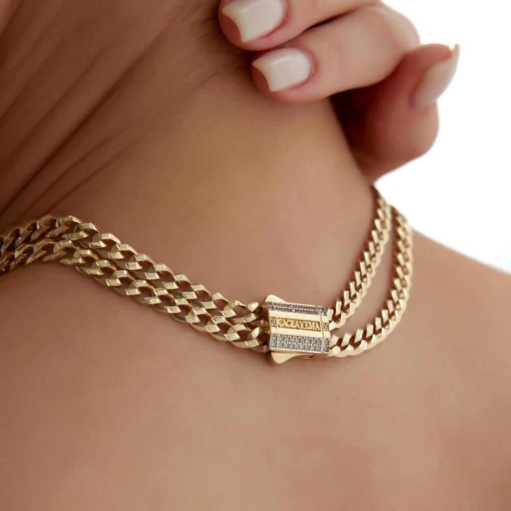 Ema Çift Zincir Tasarım Altın Gurmet Kolye
