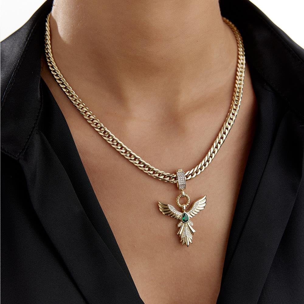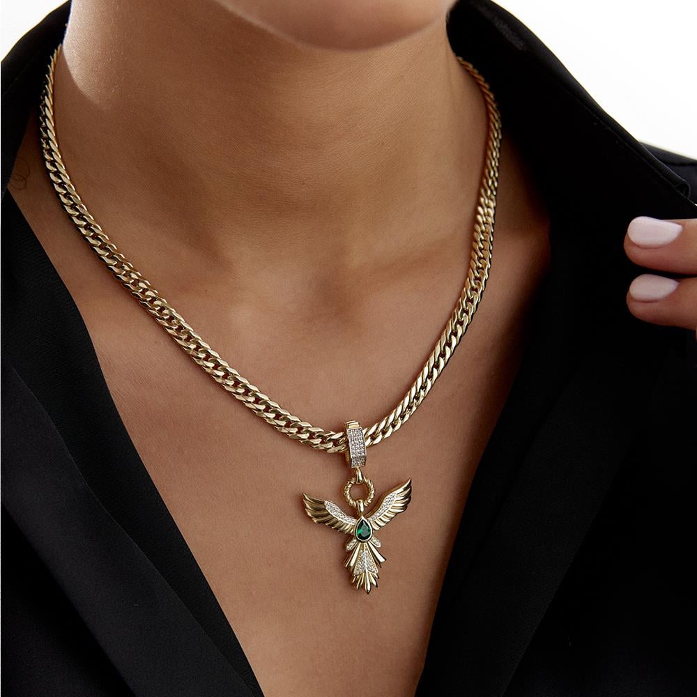 Ema Yeşil Taşlı Anka Kuşu Altın Kolye Ucu