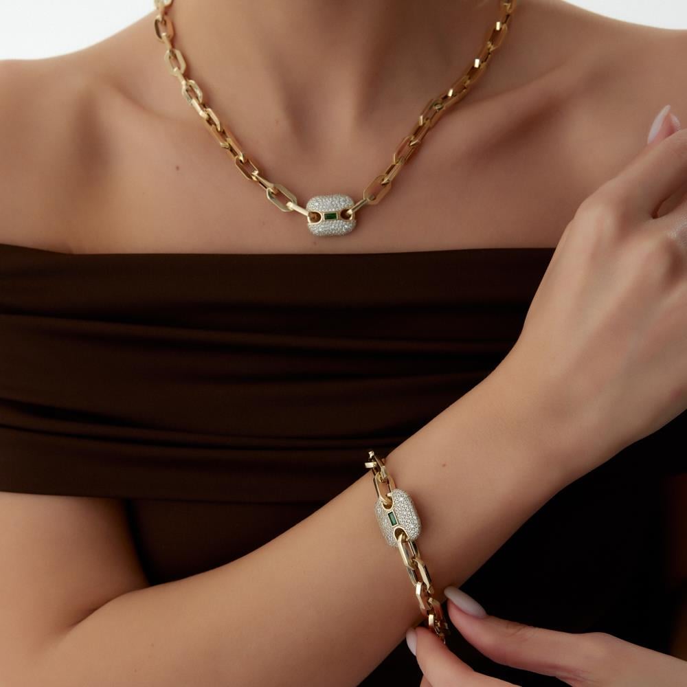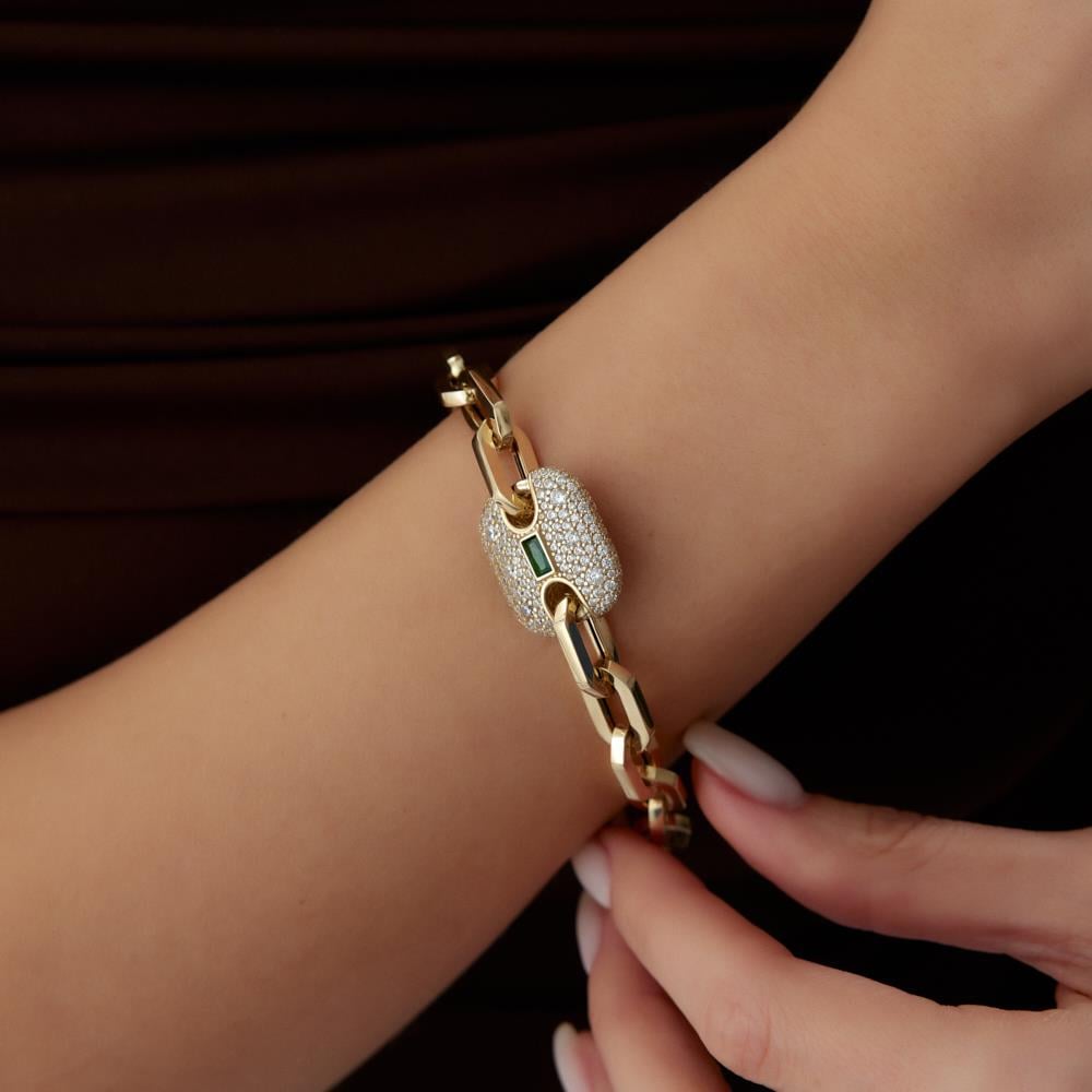 Ema Yeşil Taşlı Tasarım Altın Bileklik