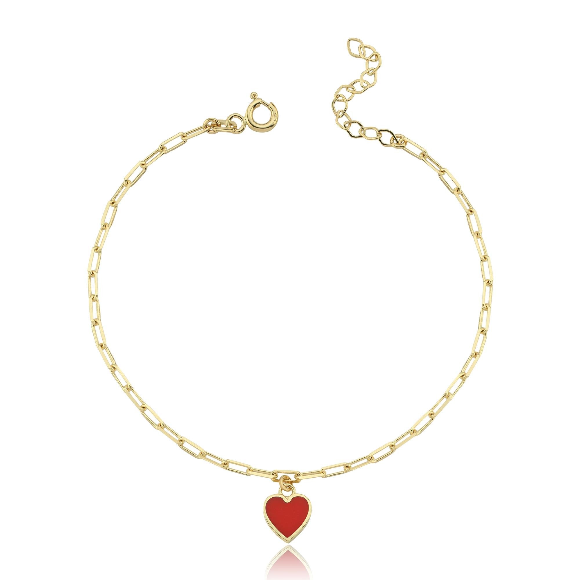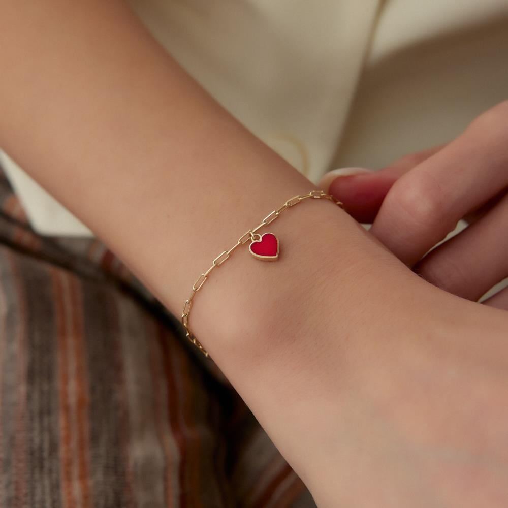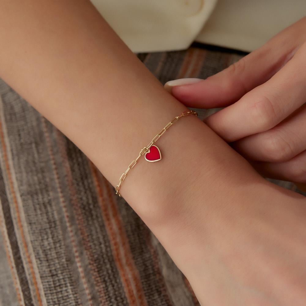Kırmızı Mineli Kalp Altın Ataç Bileklik