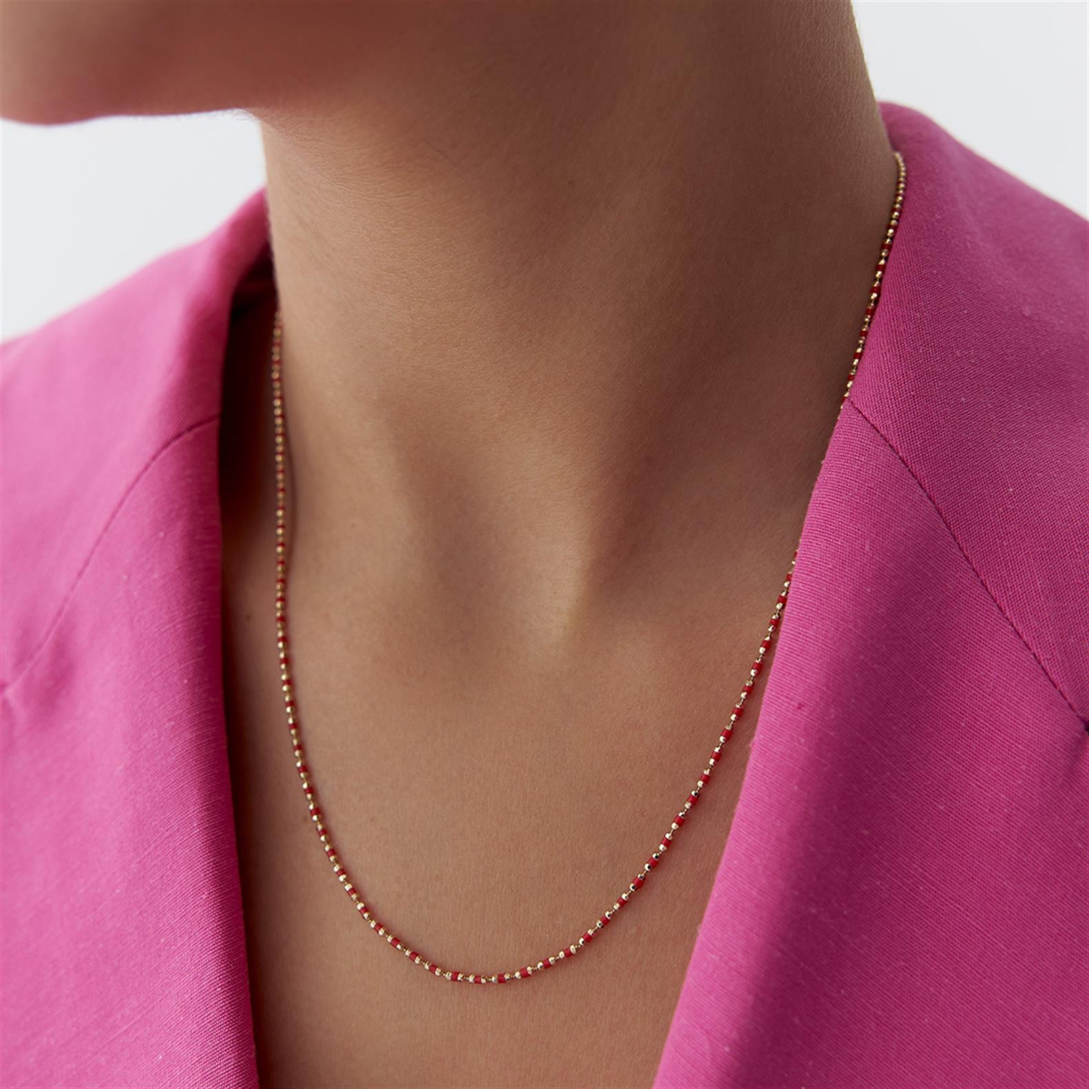 Kırmızı Mineli Minimal Kolye