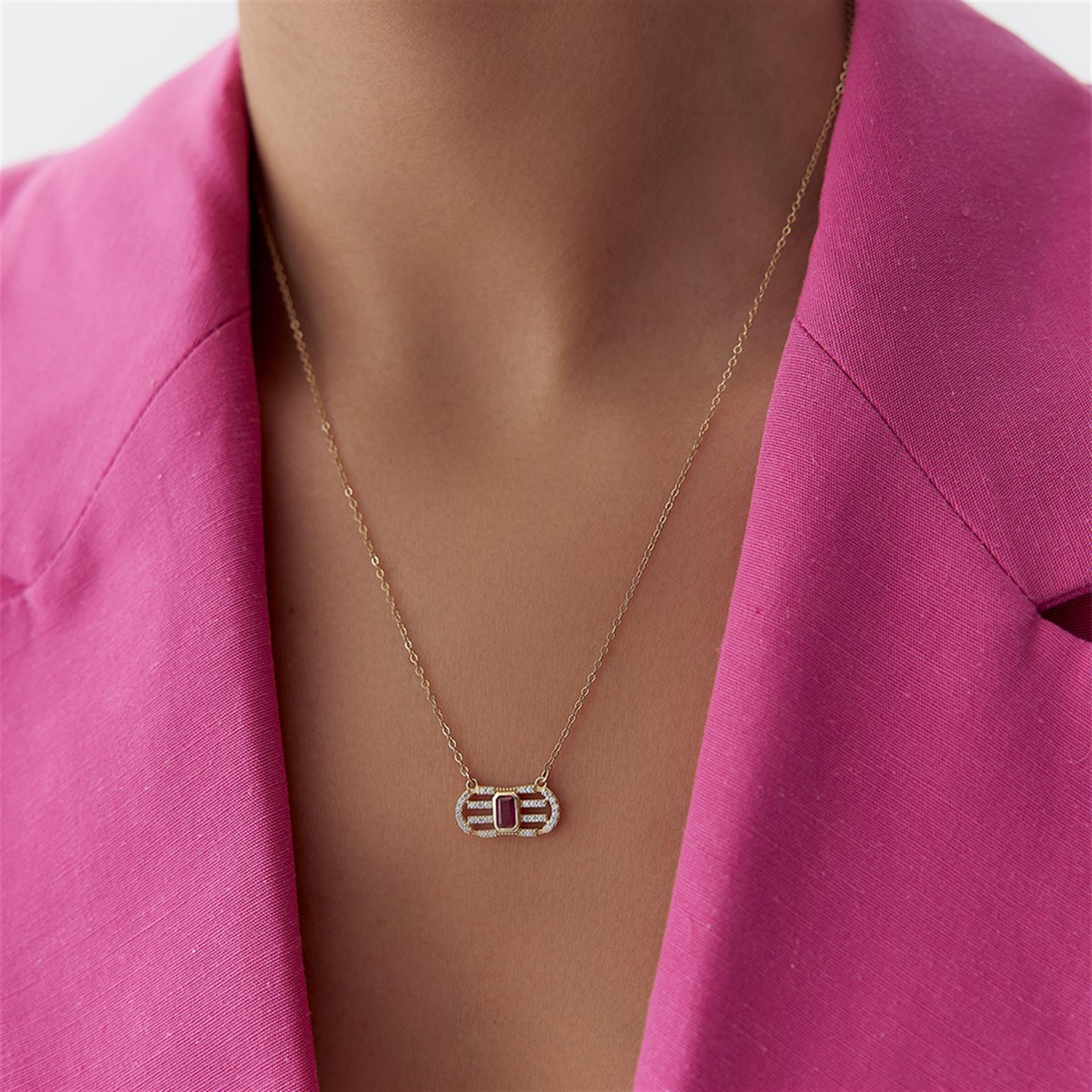 Kırmızı Taşlı Minimal Flana Altın Kolye
