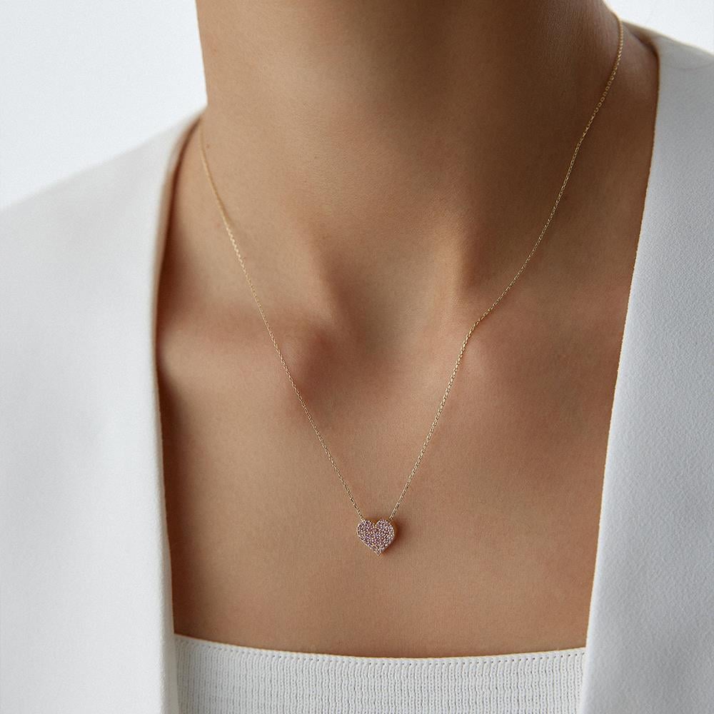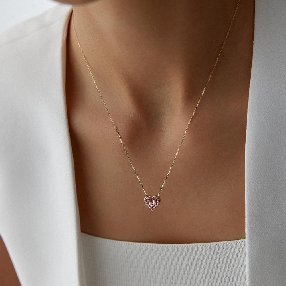 Kırmızı Taşlı Minimal Kalp Altın Kolye