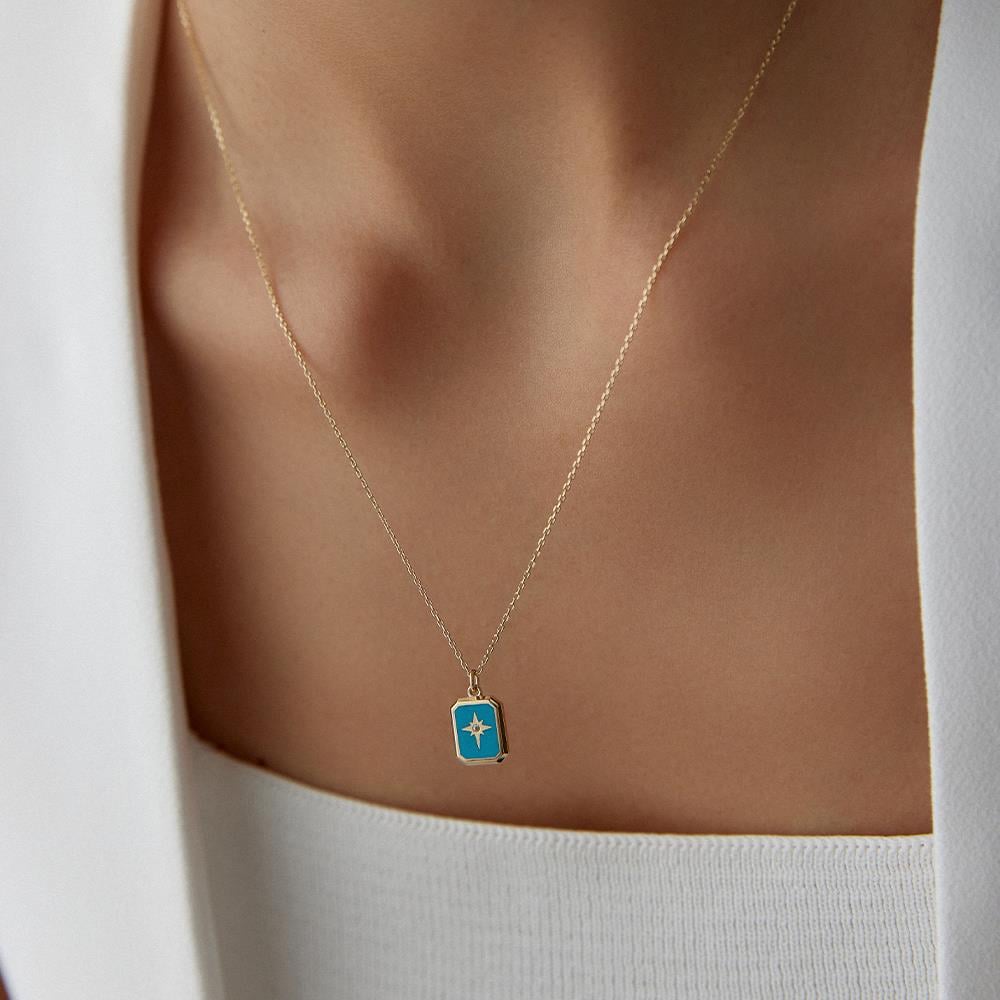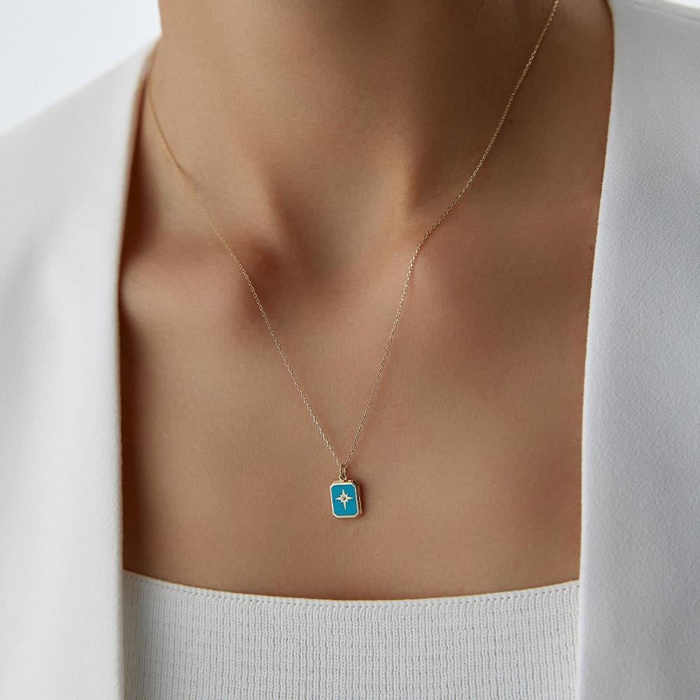 Kuzey Yıldızı Figürlü Mavi Mineli Altın Kolye