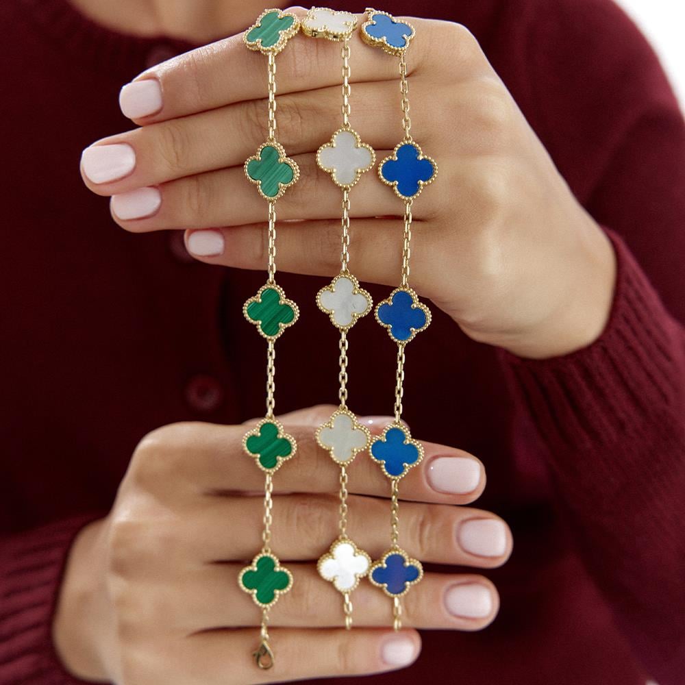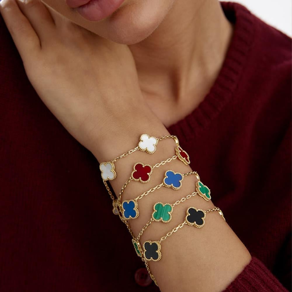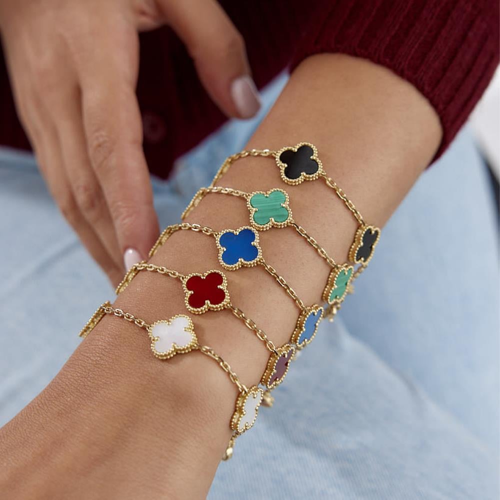 Malahit Onyx Sedef Akik Taşlı Beşli Yonca Altın Bileklik (Lütfen istediğiniz taşı veya rengini sipariş notu kısmında belirtiniz. )