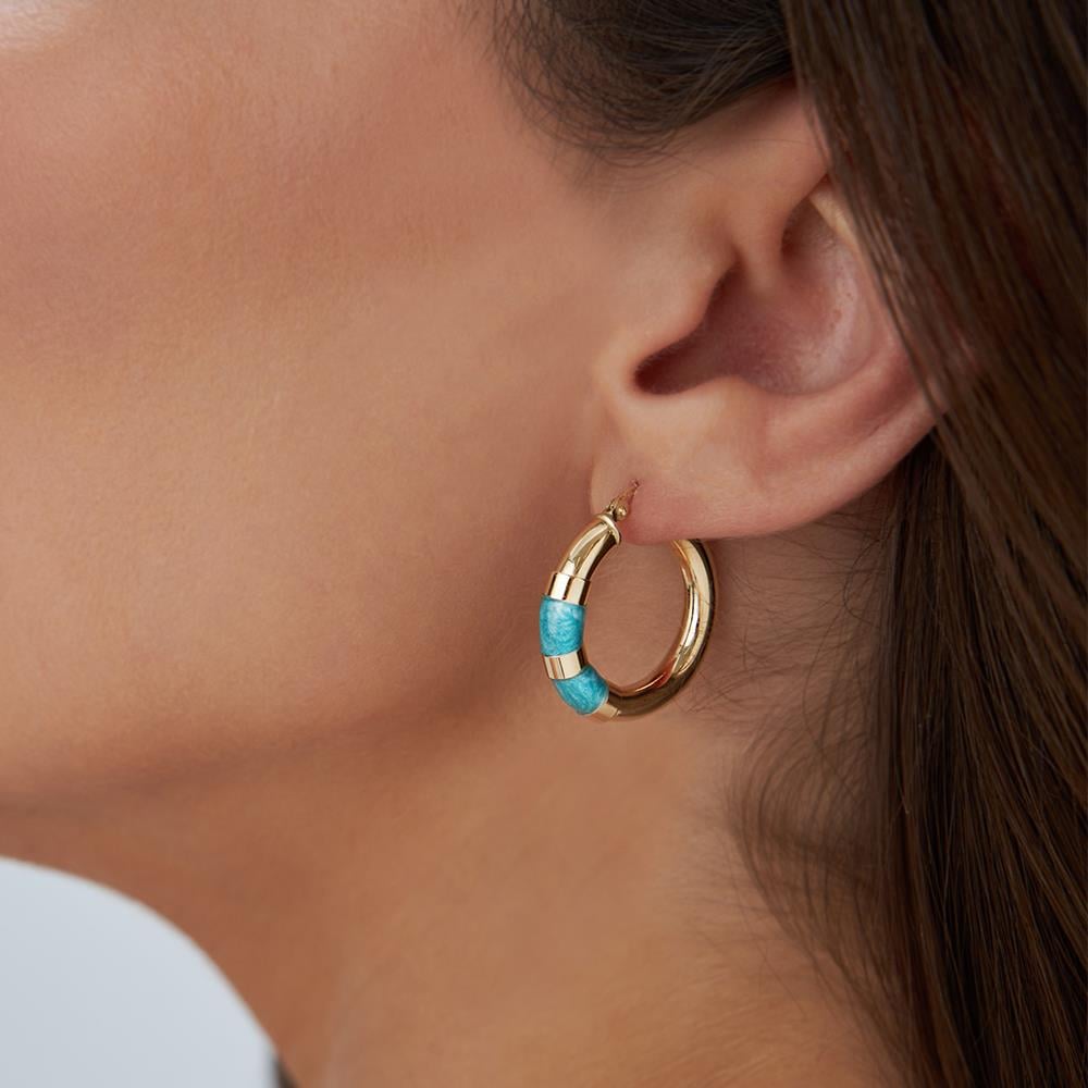 Mavi Mineli Altın Halka Küpe