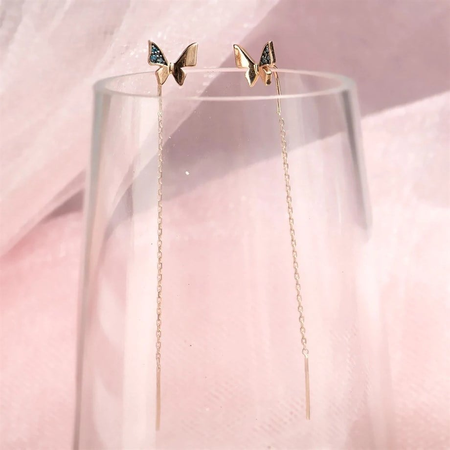 Mavi Pırlanta Kelebek Küpe