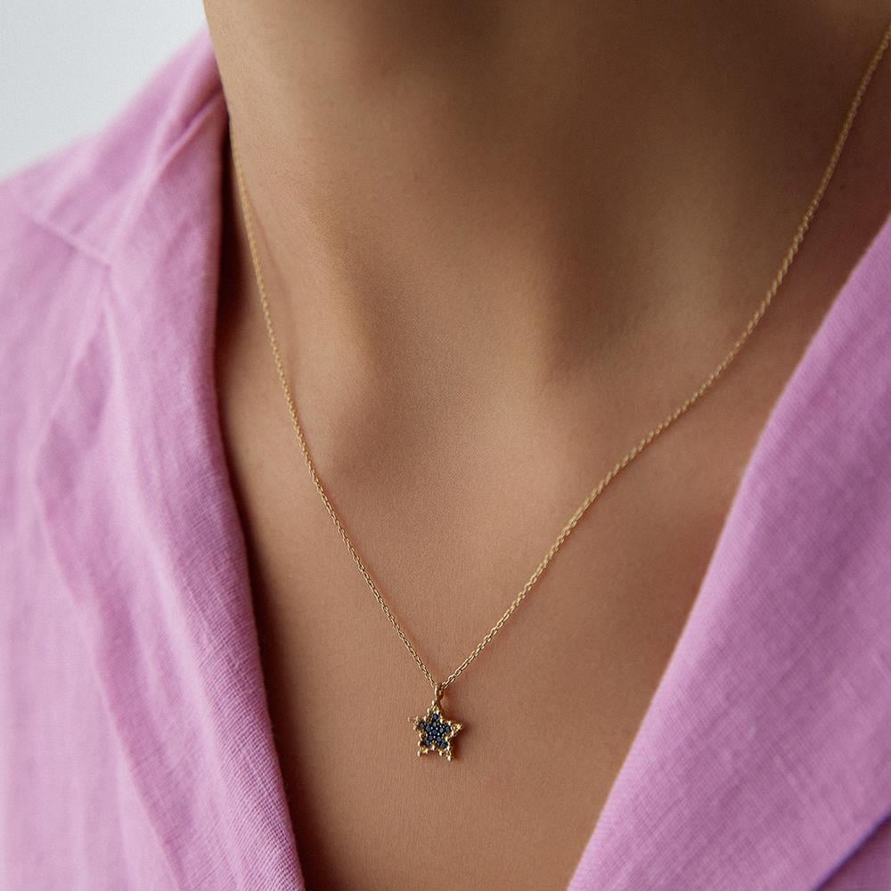 Mavi Taşlı Minimal Yıldız Altın Kolye