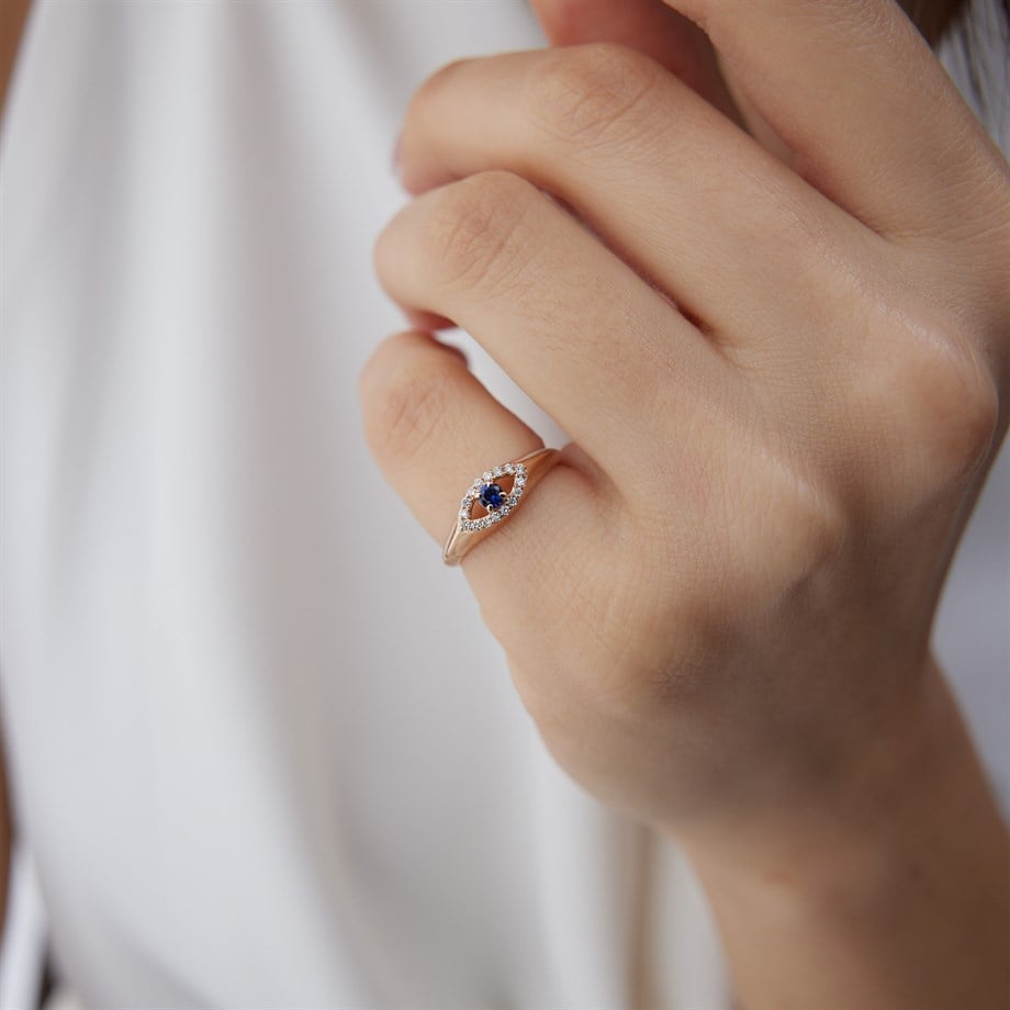 Minimal Mavi Göz Pırlanta Yüzük