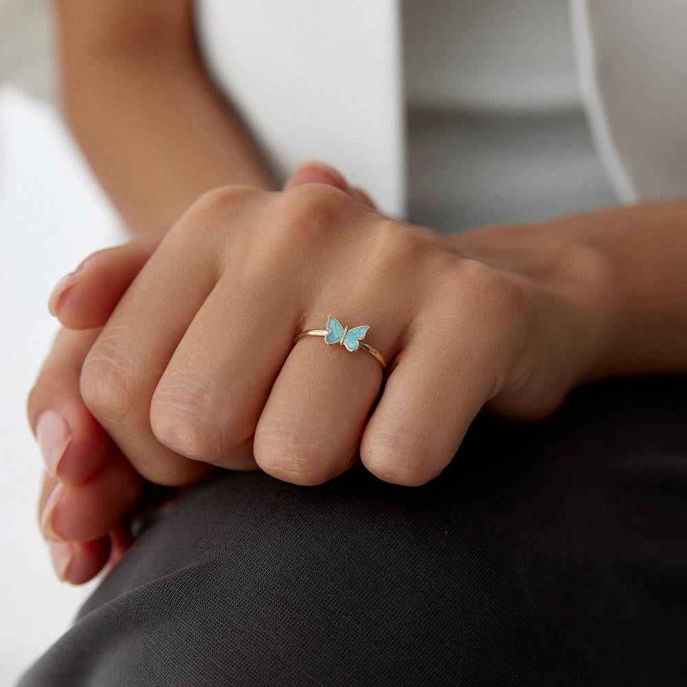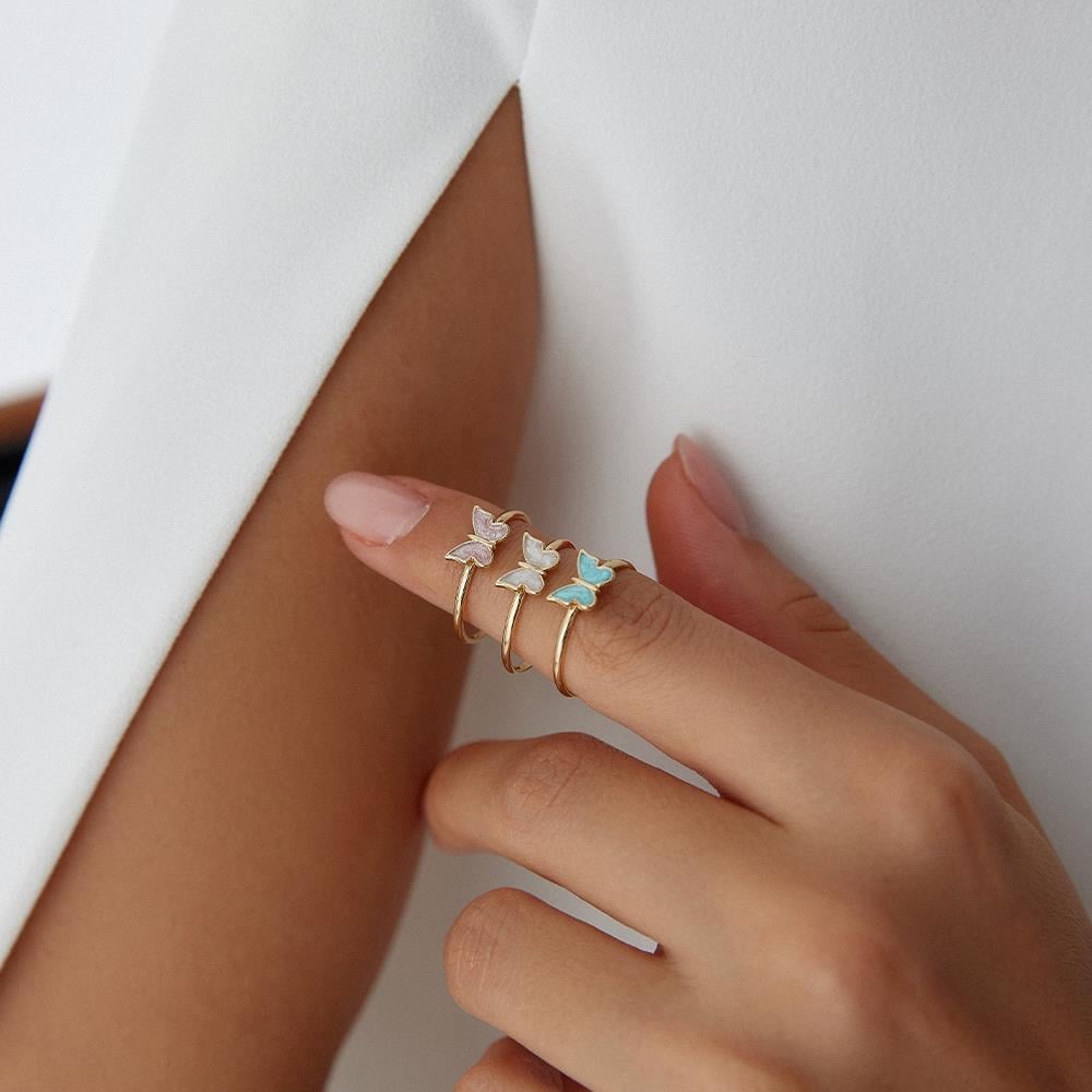 Minimal Sedefli Kelebek Figür Altın Yüzük