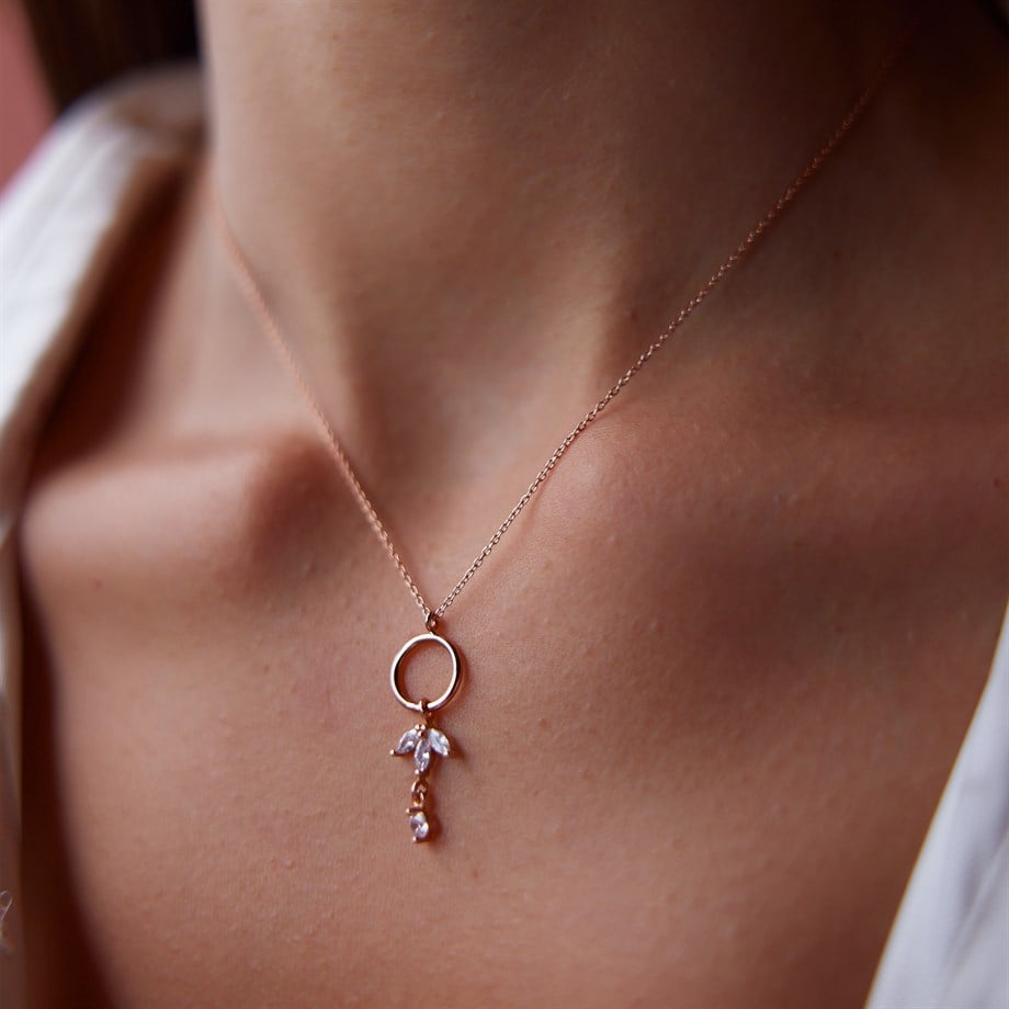 Minimal Ters Lotus Figürlü Kolye