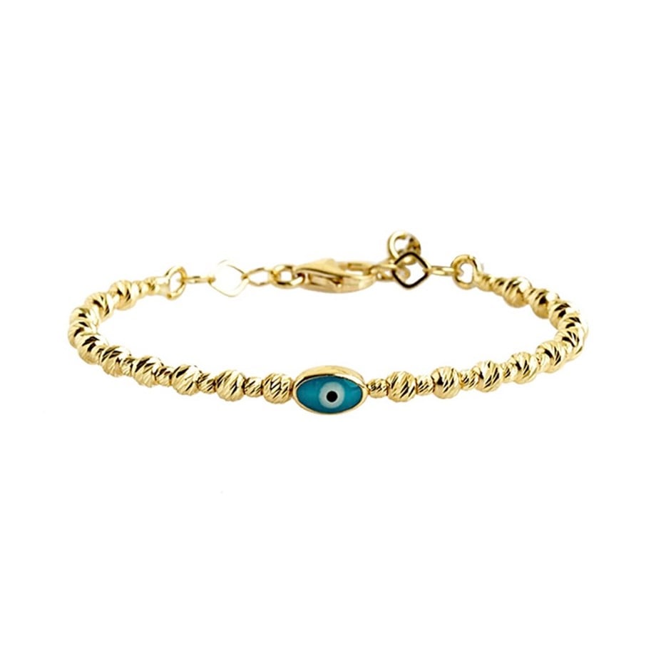 Nazar Boncuklu Sarı Altın Dorika Çocuk Bilezik