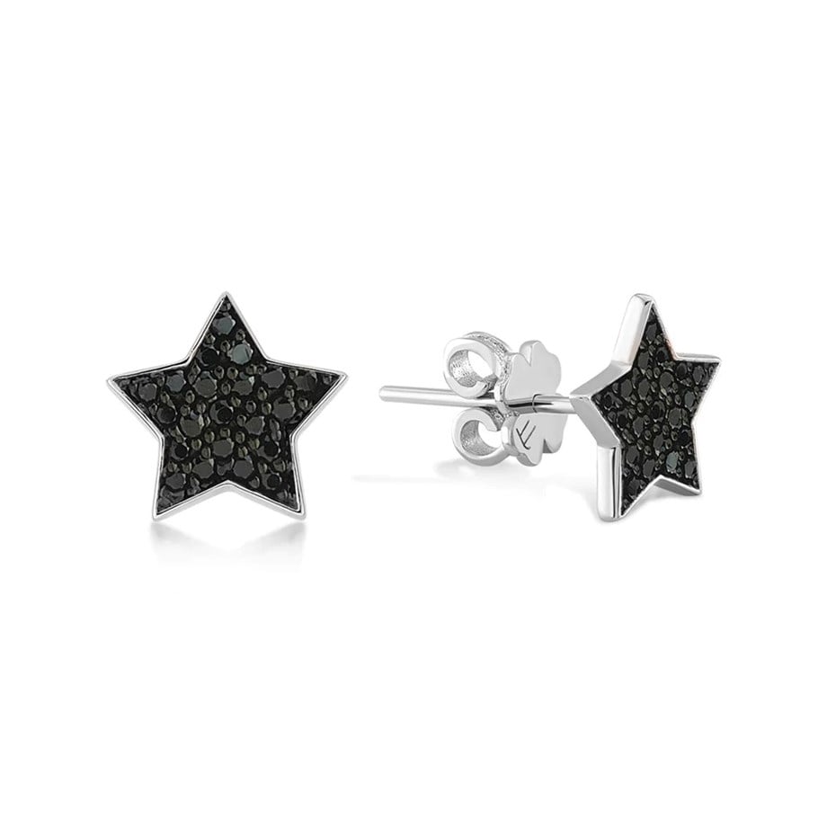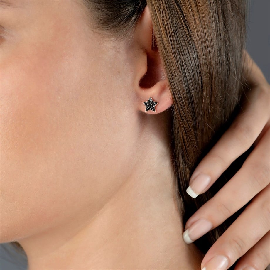 Onyx Taşlı Minimal Pimli Yıldız Küpe