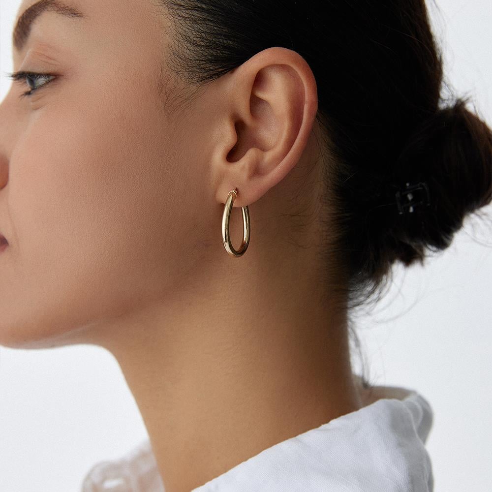 Oval Halka Altın Küpe