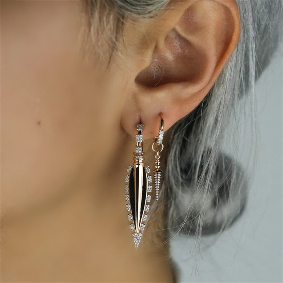 Farklı tasarımlardan hoşlanan kadınların tercihi; özel tasarım pırlanta tüy küpemiz.
