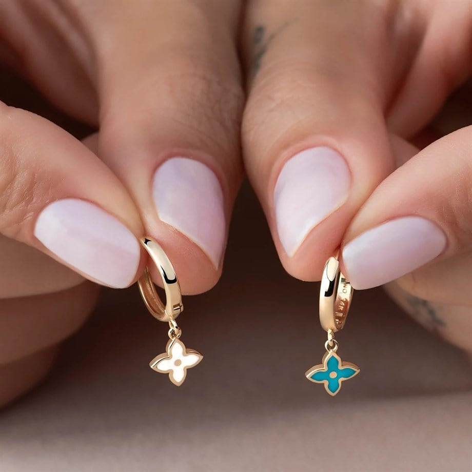 Renkli Mineli Trend Yonca Küpe