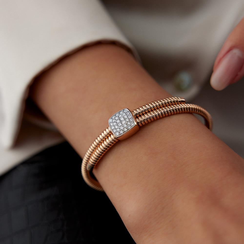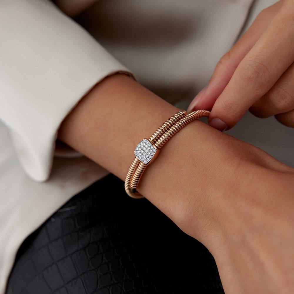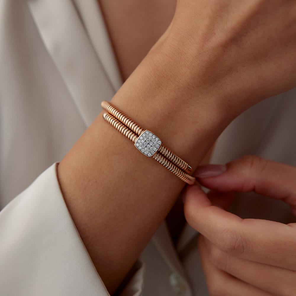 Rose Altın Çift Sıra Tasarım Pırlanta Kelepçe Bileklik