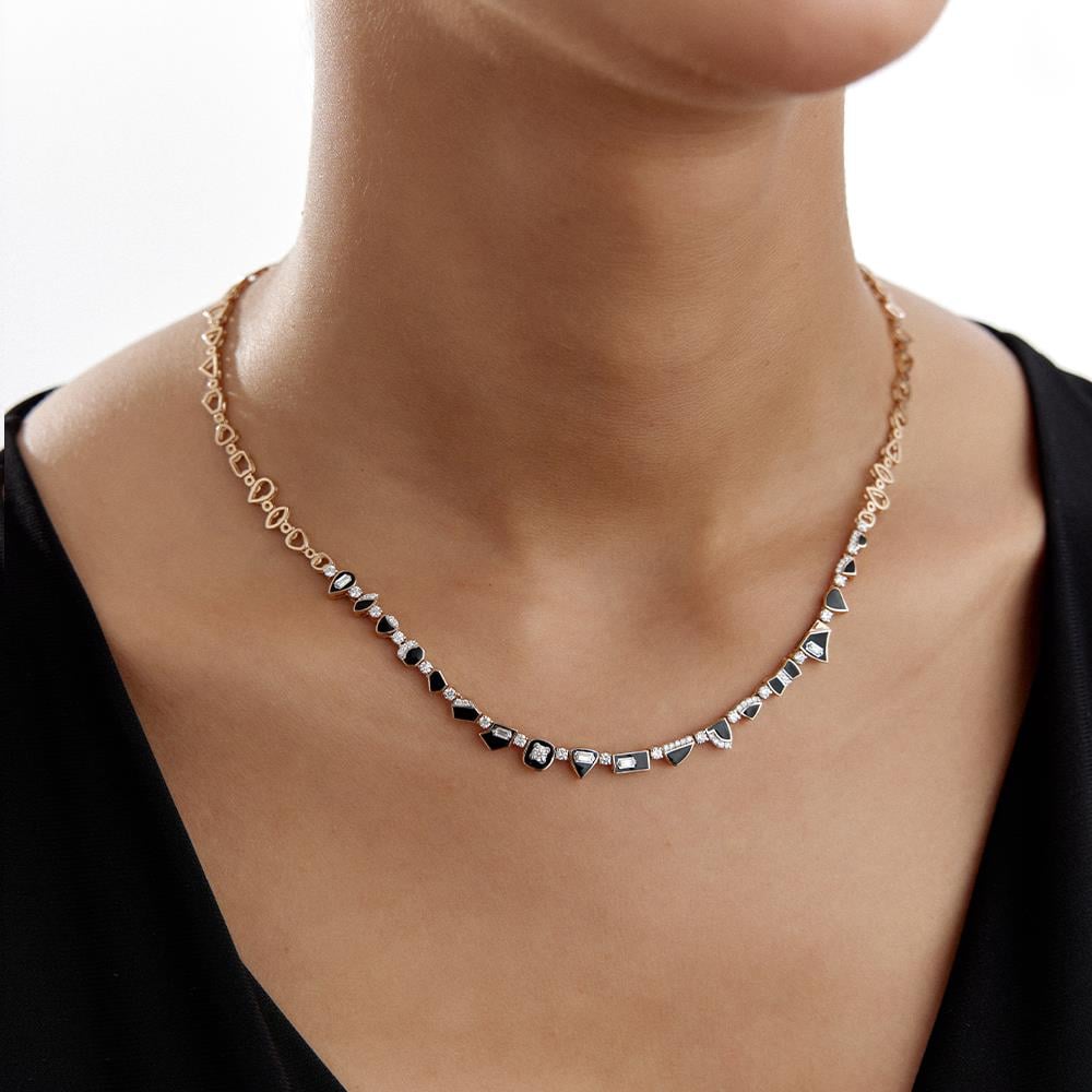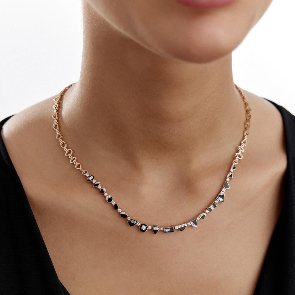 Rose Altın Siyah Mineli Tasarım Pırlanta Kolye