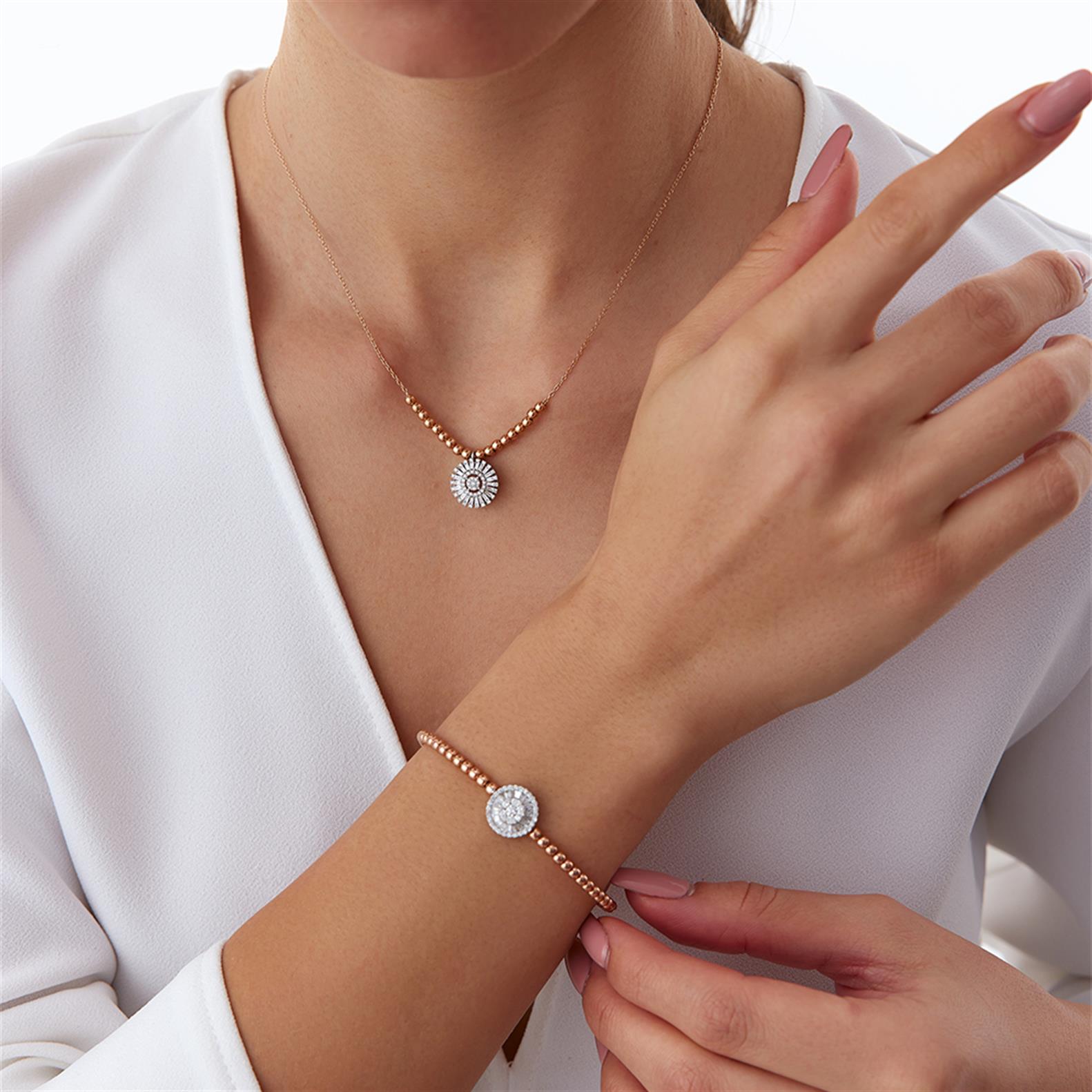 Rose Altın Tasarım Pırlanta Kolye
