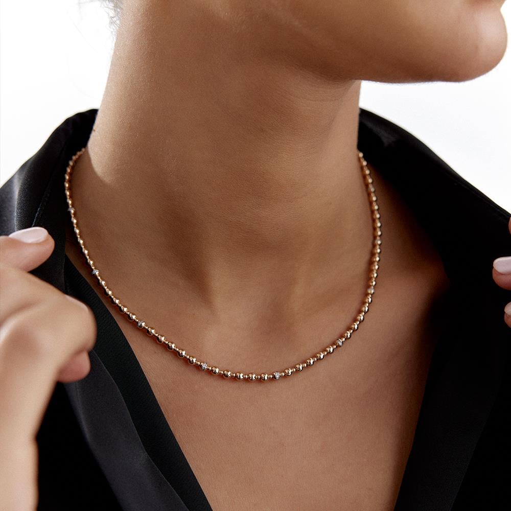 Rose Altın Yuvarlak Zincir Pırlanta Kolye
