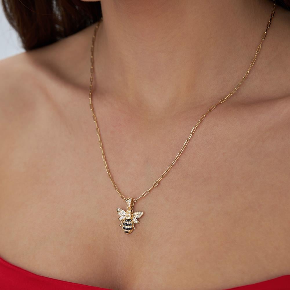 Siyah Taşlı Bal Arısı Kolye Ucu