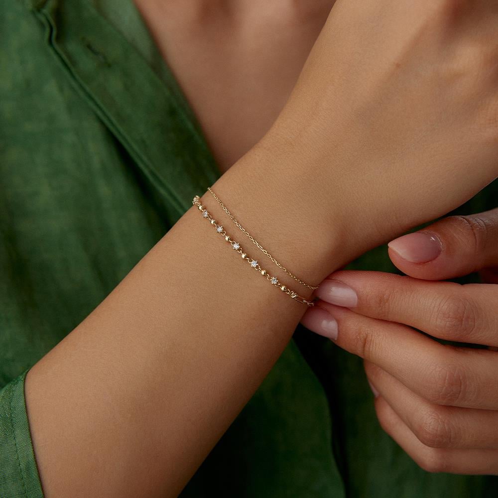 Taşlı Çift Zincir Minimal Altın Bileklik